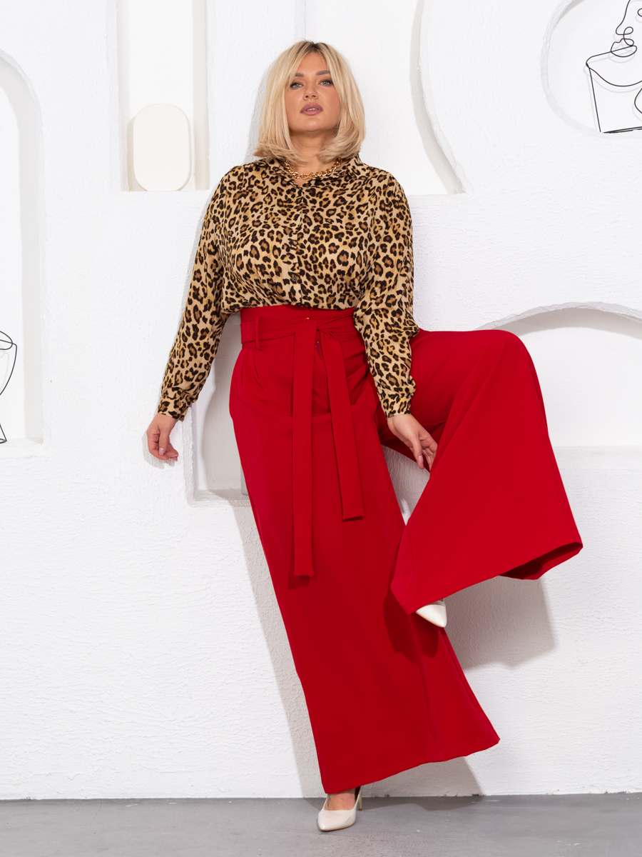 Женские юбка-брюки Палаццо на широком поясе. Втачной пояс на пуговицах. Застежка-молния. Высокая посадка. Карманы с отрезным бочком. Ткань: костюмная ткань средней плотности. Хорошо ведет себя в эксплуатации, не мнется, держит форму. Для определения размера следует ориентироваться на ОТ.