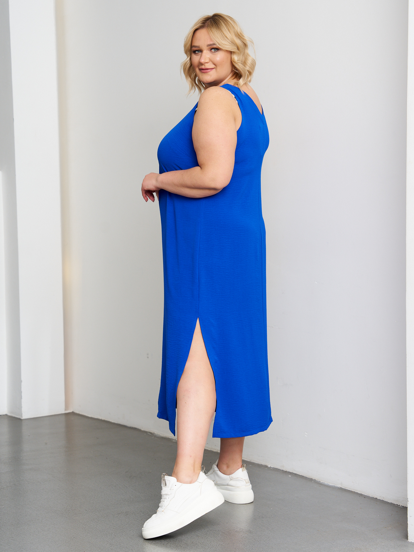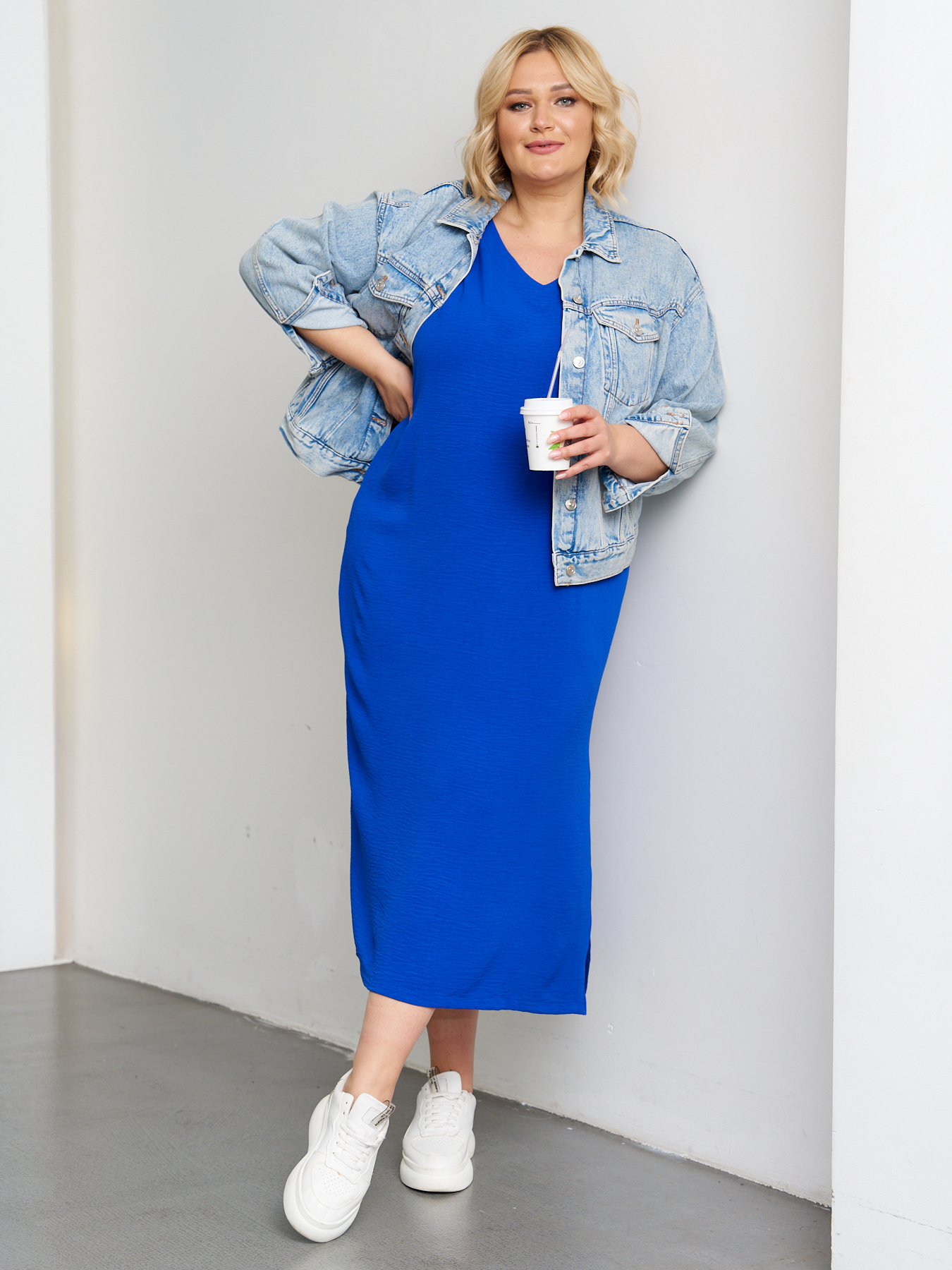 Летний длинный сарафан с открытыми плечи, и V-образным вырезом горловины. Силуэт сарафана - свободный, прямой крой. Разрез сбоку. Ткань приятная к телу, отличный вариант в жаркую погоду. Трендовый сарафан на летний сезон. Легкий летний сарафан идеален для жаркого лета. За счет свободного кроя будет отлично смотреться на любом типе фигуры. Сарафан женский подарит полную свободу движений и комфорт. Летний сарафан идеально сочетается с босоножками, балетками или открытыми туфлями на небольшом каблуке. Если вы хотите ощущать комфорт и свободу все лето, то сарафан женский летний точно для вас! Летнее платье сарафан подойдет как для полных так и для беременных женщин, он прекрасно подходит для отдыха, для летних вечерних прогулок и даже для работы в офис. Легкое летнее сарафан платье миди с глубоким вырезом на спине, без подклада из дышащей ткани идеально для лета.