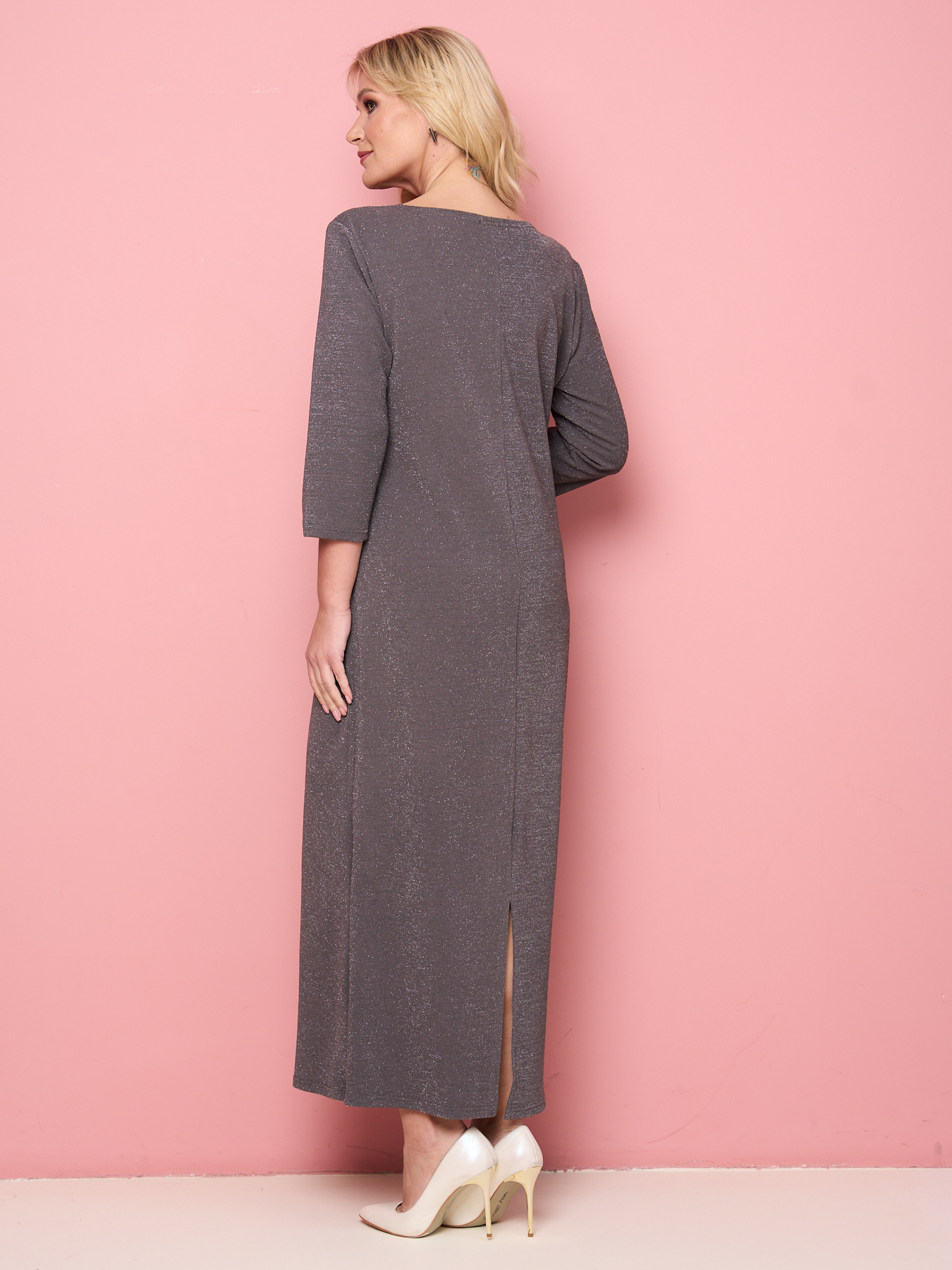 Лаконичный строгий крой, прямой силуэт, рукав 3/4 материал изделия плотный высококачественный трикотаж. Платье женское безукоризненно садится по фигуре благодаря оригинальному крою, и будет уместным в торжественном гардеробе. Платье с люрексовой нитью, блестит и переливается на свету. Не сковывает движения юбка дополнена разрезом который дополняет изысканность, не вытягивается в процессе носки, не деформируется и не линяет после стирки.