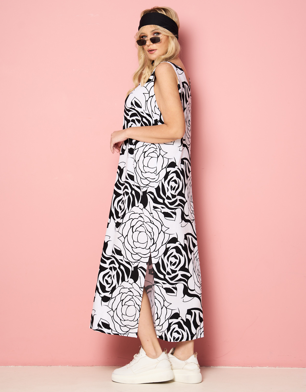 Летний длинный штапельный сарафан. Открытые плечи, V-образный вырез горловины. Силуэт сарафана - свободный, прямой крой. Разрез сбоку. Ткань приятная к телу, имеет эластичные свойства. Трендовый сарафан на летний сезон.