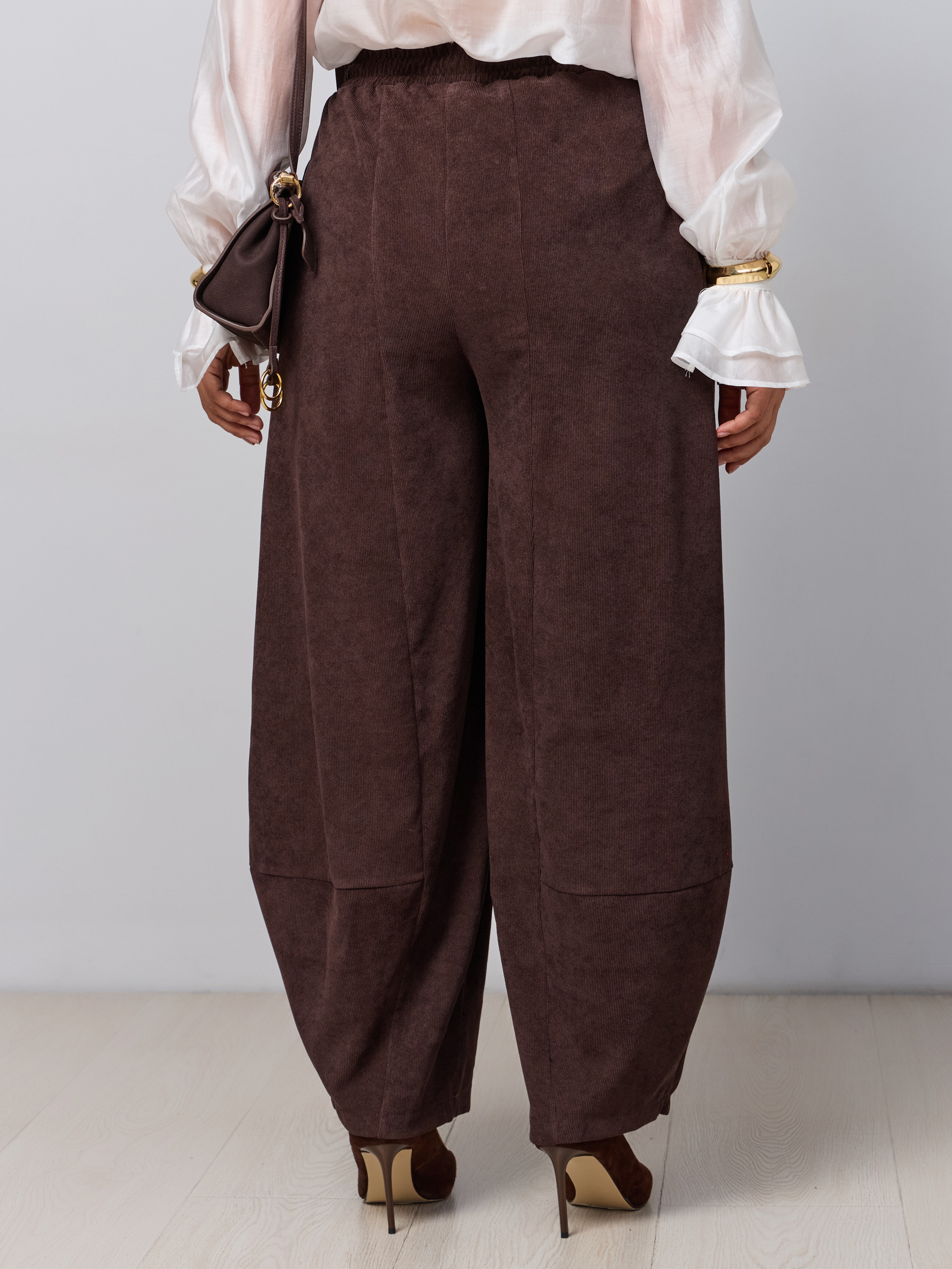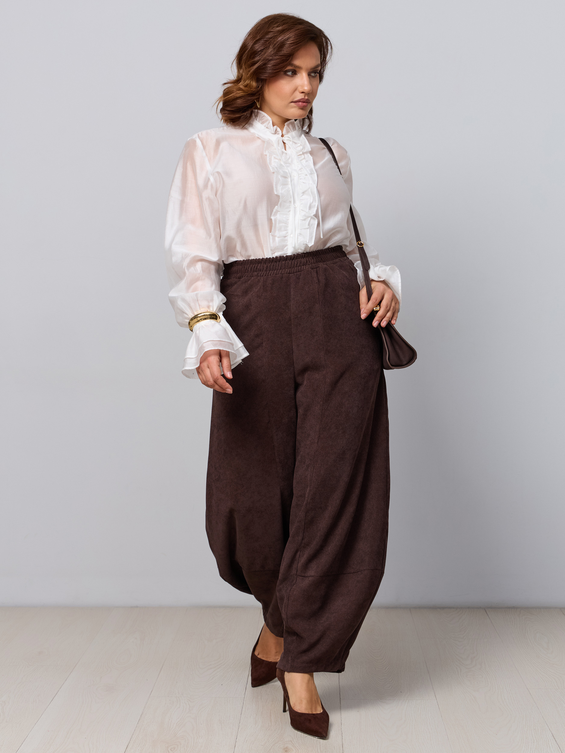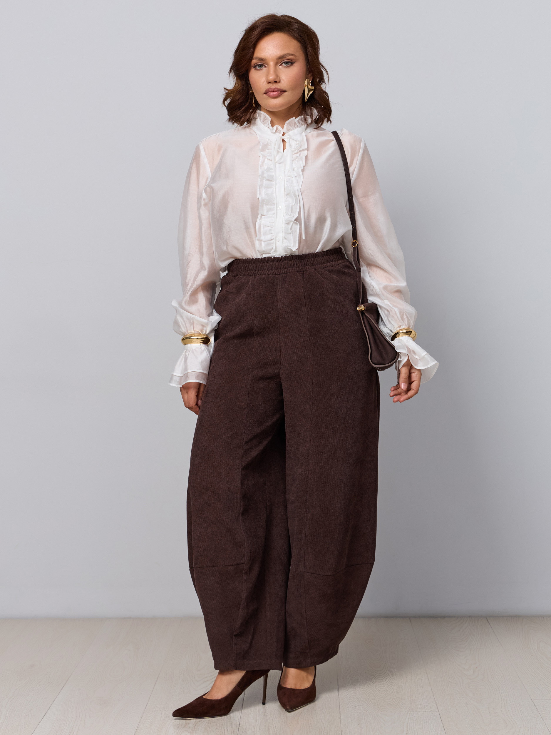 Базовые универсальные широкие брюки из вельвета на резинке отлично подходят для повседневной носки. Ткань с мелким рубчиком. Хорошо комбинируются с разной одеждой. Надевайте к брюкам блузку или жакет и вы получите офисный или школьный комплект, можете надеть футболку или свитшот и это будет повседневный или спортивный образ. Сочетается с классической и спортивной обувью. Подойдет для отдыха, офиса, школы. Прочная и износоустойчивая ткань. Практически не мнётся и не пачкается. Не деформируется при долгой носке, легко чистится от грязи и пыли. Сохраняет форму даже после многолетней носки, не выцветает, не даёт усадку после стирки. Можно носить как костюм, сочетая с нашими вельветовыми туниками. Можете найти их в рекомендациях к этому товару или перейдя в карточку брэнда SPARADA. Широкие вельветовые офисные брюки. Брюки с высокой посадкой. Женские брюки широкие вельветовые, пояс из эластичной ткани идеально подходят для дома, отдыха и прогулок. Карманы с отрезным бочком, идеальная посадка по фигуре.