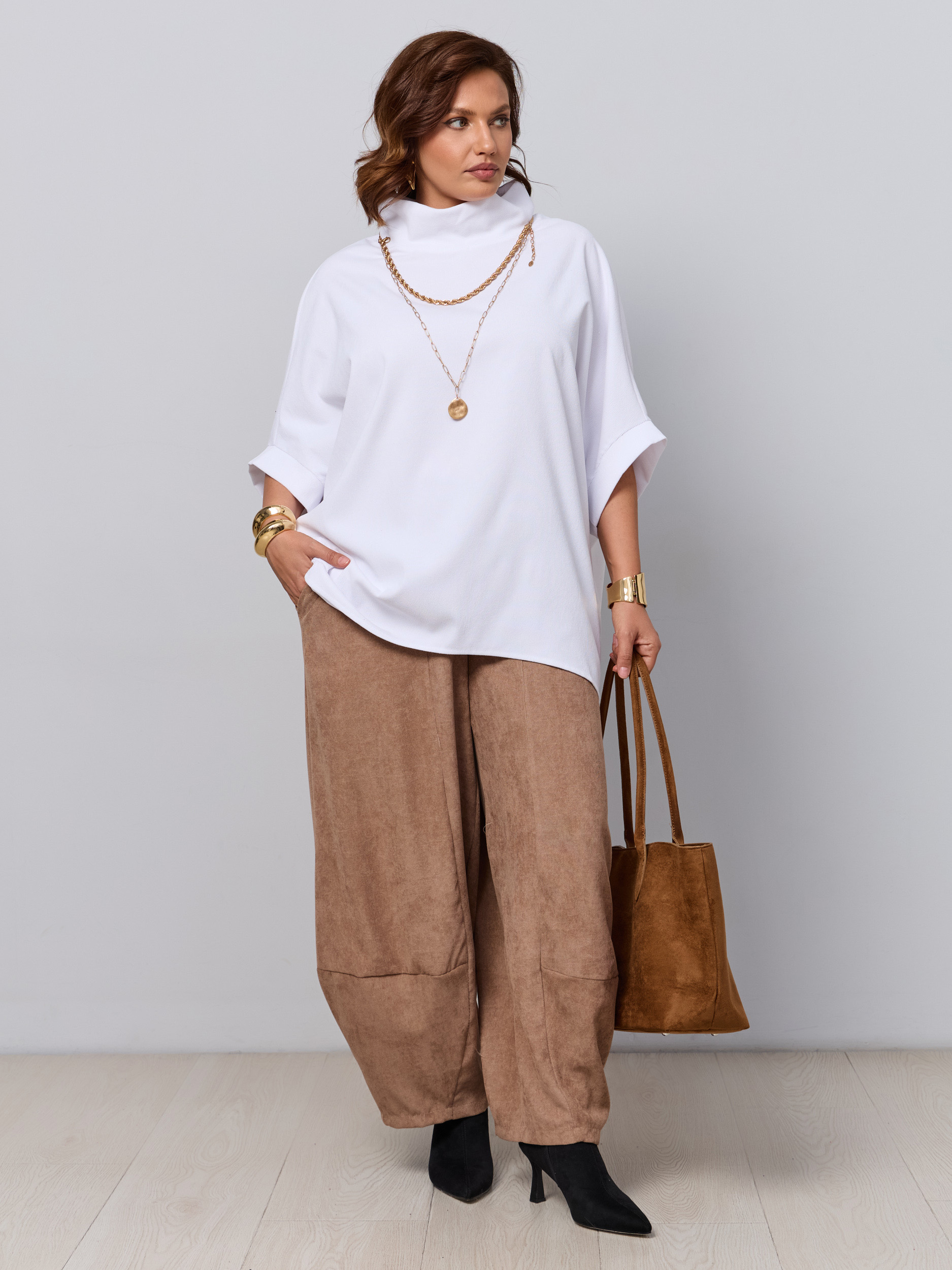 Базовые универсальные широкие брюки из вельвета на резинке отлично подходят для повседневной носки. Ткань с мелким рубчиком. Хорошо комбинируются с разной одеждой. Надевайте к брюкам блузку или жакет и вы получите офисный или школьный комплект, можете надеть футболку или свитшот и это будет повседневный или спортивный образ. Сочетается с классической и спортивной обувью. Подойдет для отдыха, офиса, школы. Прочная и износоустойчивая ткань. Практически не мнётся и не пачкается. Не деформируется при долгой носке, легко чистится от грязи и пыли. Сохраняет форму даже после многолетней носки, не выцветает, не даёт усадку после стирки. Можно носить как костюм, сочетая с нашими вельветовыми туниками. Можете найти их в рекомендациях к этому товару или перейдя в карточку брэнда SPARADA. Широкие вельветовые офисные брюки. Брюки с высокой посадкой. Женские брюки широкие вельветовые, пояс из эластичной ткани идеально подходят для дома, отдыха и прогулок. Карманы с отрезным бочком, идеальная посадка по фигуре.
