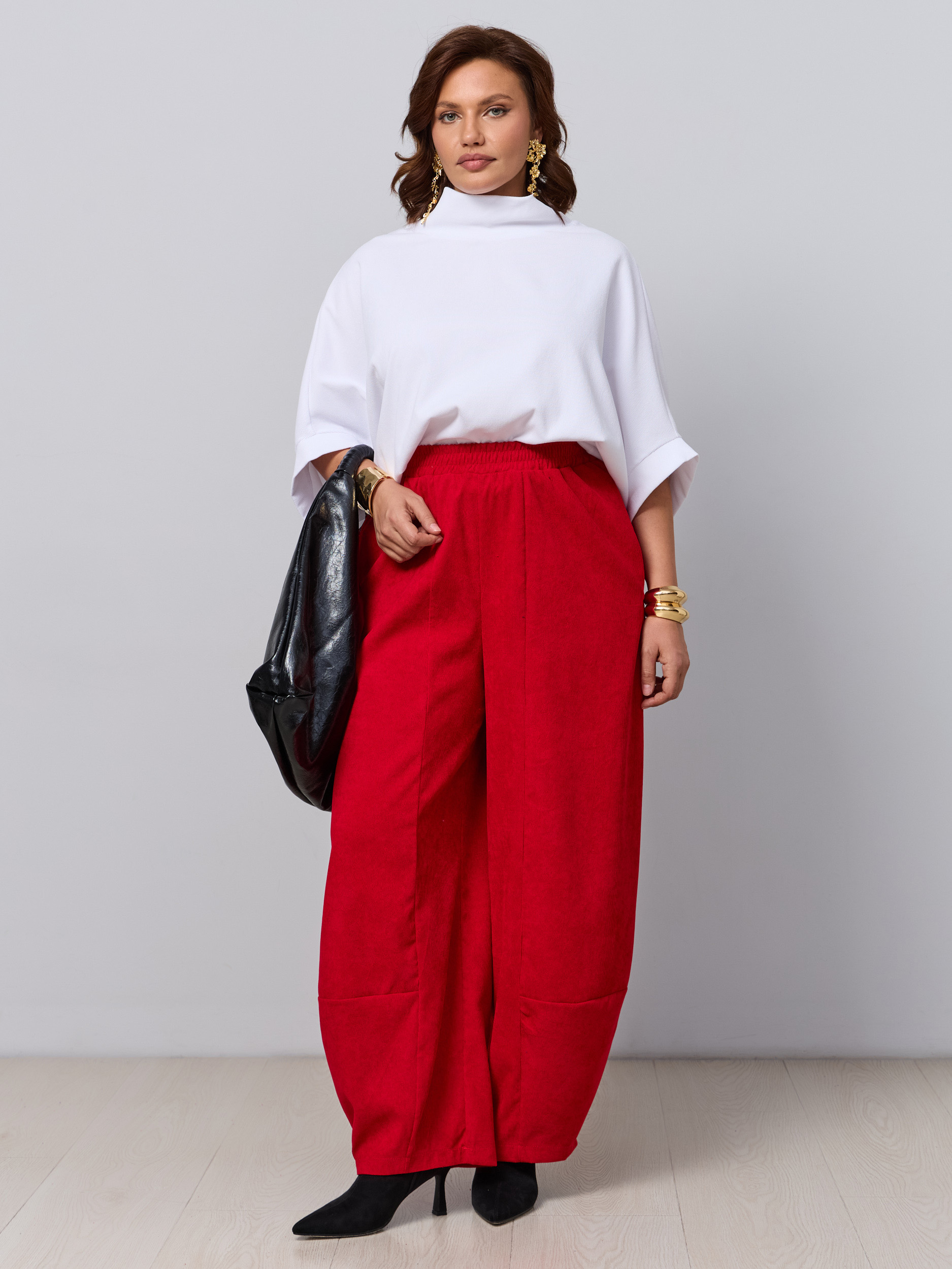 Базовые универсальные широкие брюки из вельвета на резинке отлично подходят для повседневной носки. Ткань с мелким рубчиком. Хорошо комбинируются с разной одеждой. Надевайте к брюкам блузку или жакет и вы получите офисный или школьный комплект, можете надеть футболку или свитшот и это будет повседневный или спортивный образ. Сочетается с классической и спортивной обувью. Подойдет для отдыха, офиса, школы. Прочная и износоустойчивая ткань. Практически не мнётся и не пачкается. Не деформируется при долгой носке, легко чистится от грязи и пыли. Сохраняет форму даже после многолетней носки, не выцветает, не даёт усадку после стирки. Можно носить как костюм, сочетая с нашими вельветовыми туниками. Можете найти их в рекомендациях к этому товару или перейдя в карточку брэнда SPARADA. Широкие вельветовые офисные брюки. Брюки с высокой посадкой. Женские брюки широкие вельветовые, пояс из эластичной ткани идеально подходят для дома, отдыха и прогулок. Карманы с отрезным бочком, идеальная посадка по фигуре.