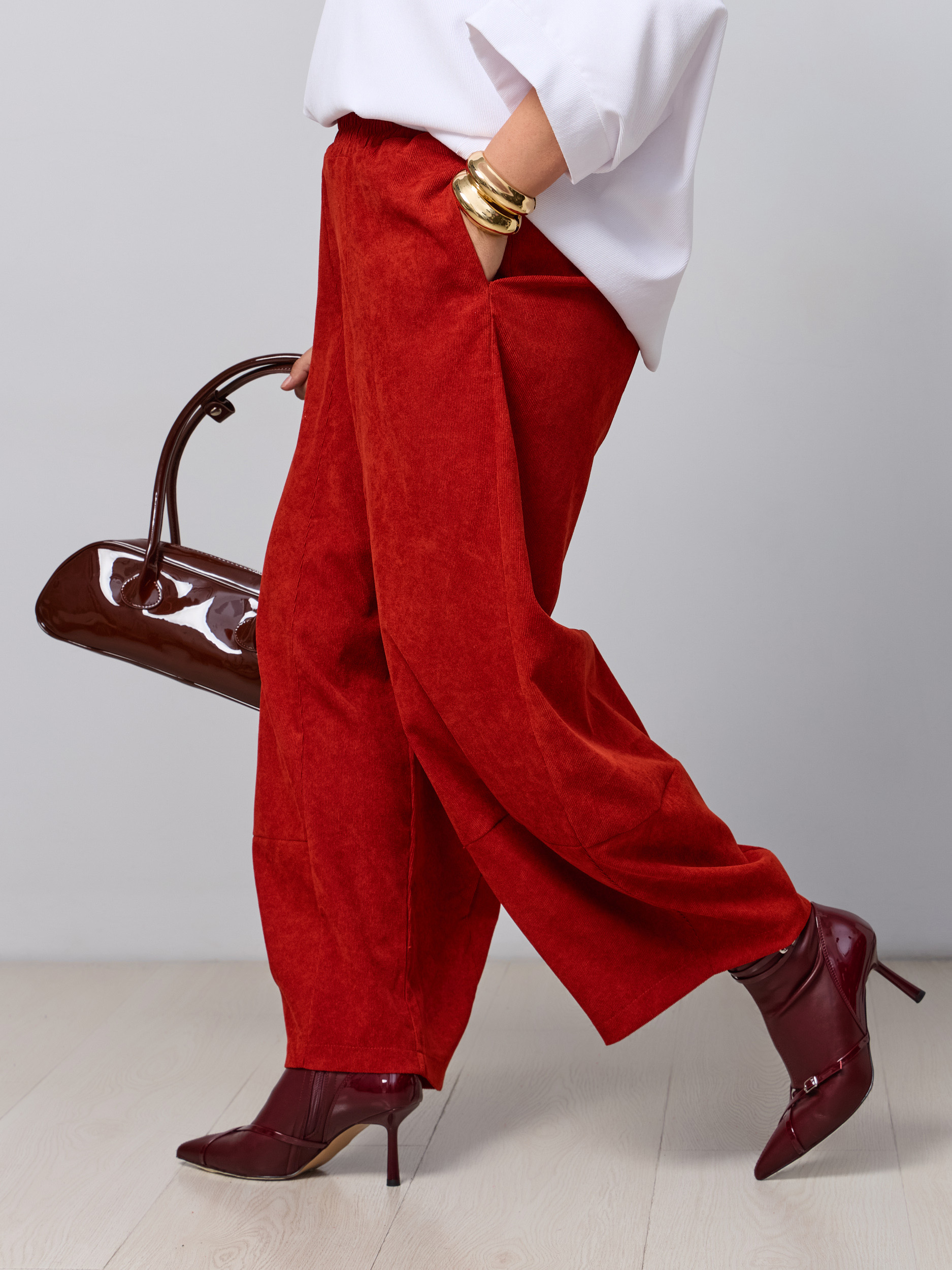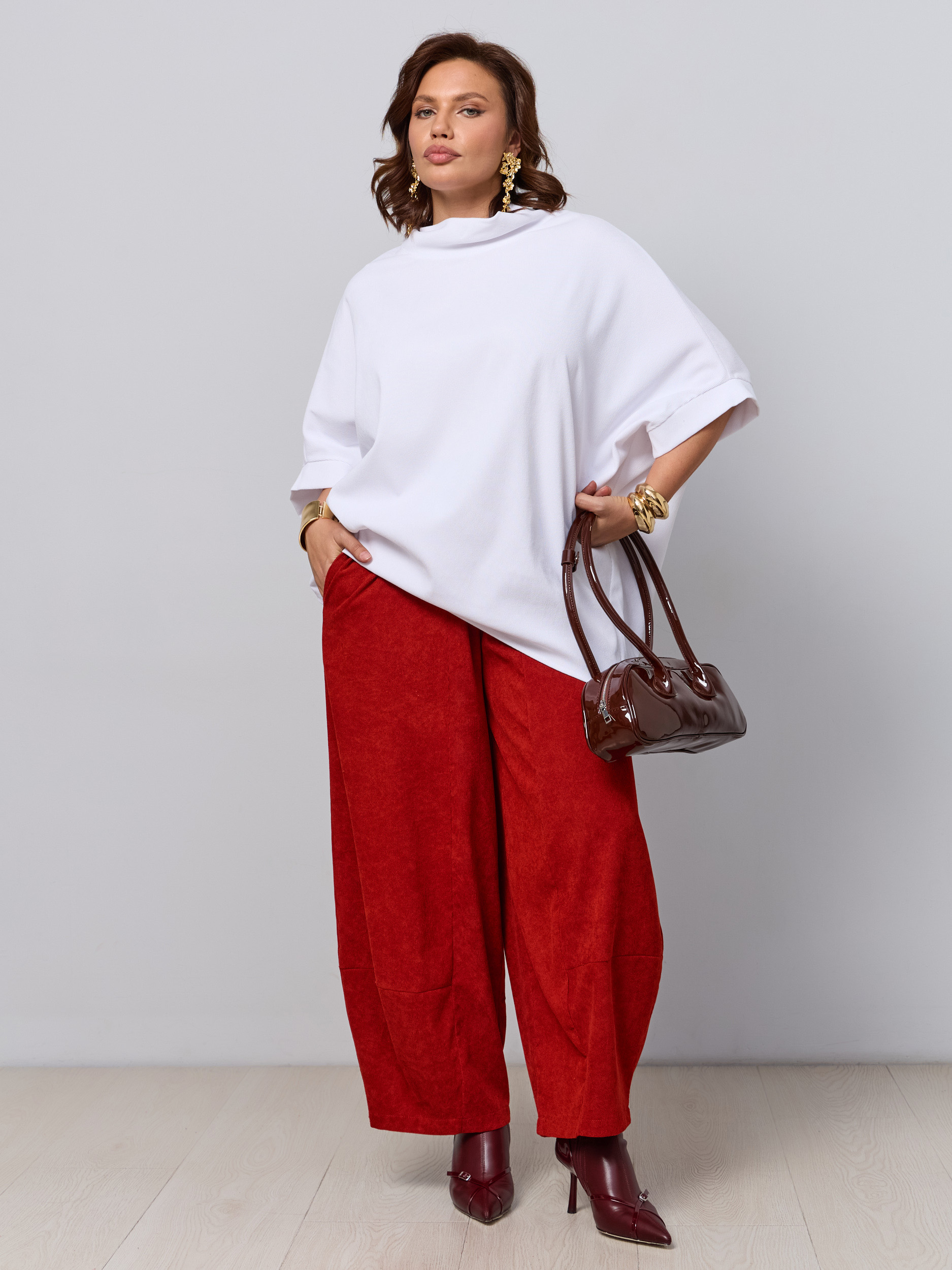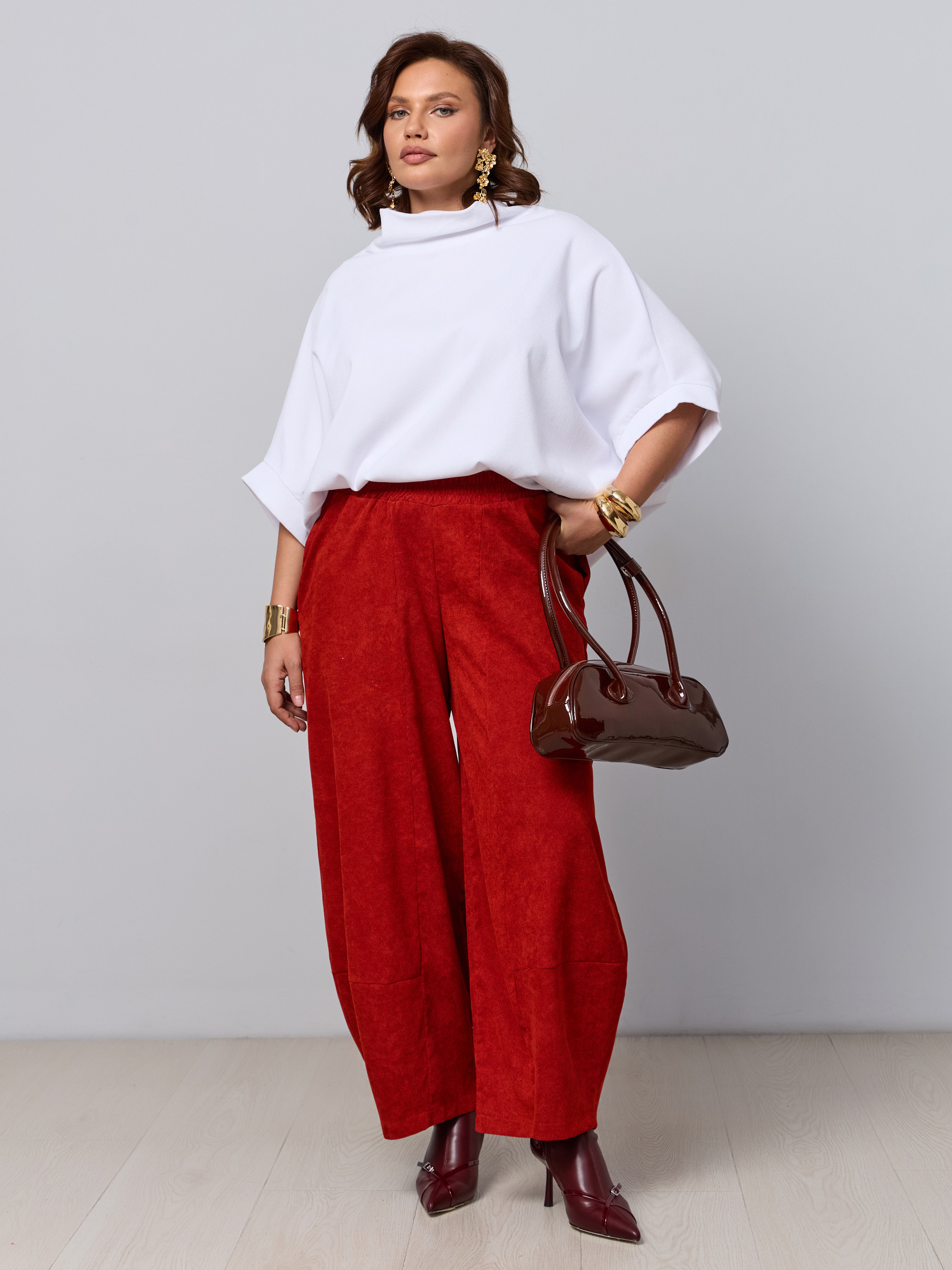 Базовые универсальные широкие брюки из вельвета на резинке отлично подходят для повседневной носки. Ткань с мелким рубчиком. Хорошо комбинируются с разной одеждой. Надевайте к брюкам блузку или жакет и вы получите офисный или школьный комплект, можете надеть футболку или свитшот и это будет повседневный или спортивный образ. Сочетается с классической и спортивной обувью. Подойдет для отдыха, офиса, школы. Прочная и износоустойчивая ткань. Практически не мнётся и не пачкается. Не деформируется при долгой носке, легко чистится от грязи и пыли. Сохраняет форму даже после многолетней носки, не выцветает, не даёт усадку после стирки. Можно носить как костюм, сочетая с нашими вельветовыми туниками. Можете найти их в рекомендациях к этому товару или перейдя в карточку брэнда SPARADA. Широкие вельветовые офисные брюки. Брюки с высокой посадкой. Женские брюки широкие вельветовые, пояс из эластичной ткани идеально подходят для дома, отдыха и прогулок. Карманы с отрезным бочком, идеальная посадка по фигуре.