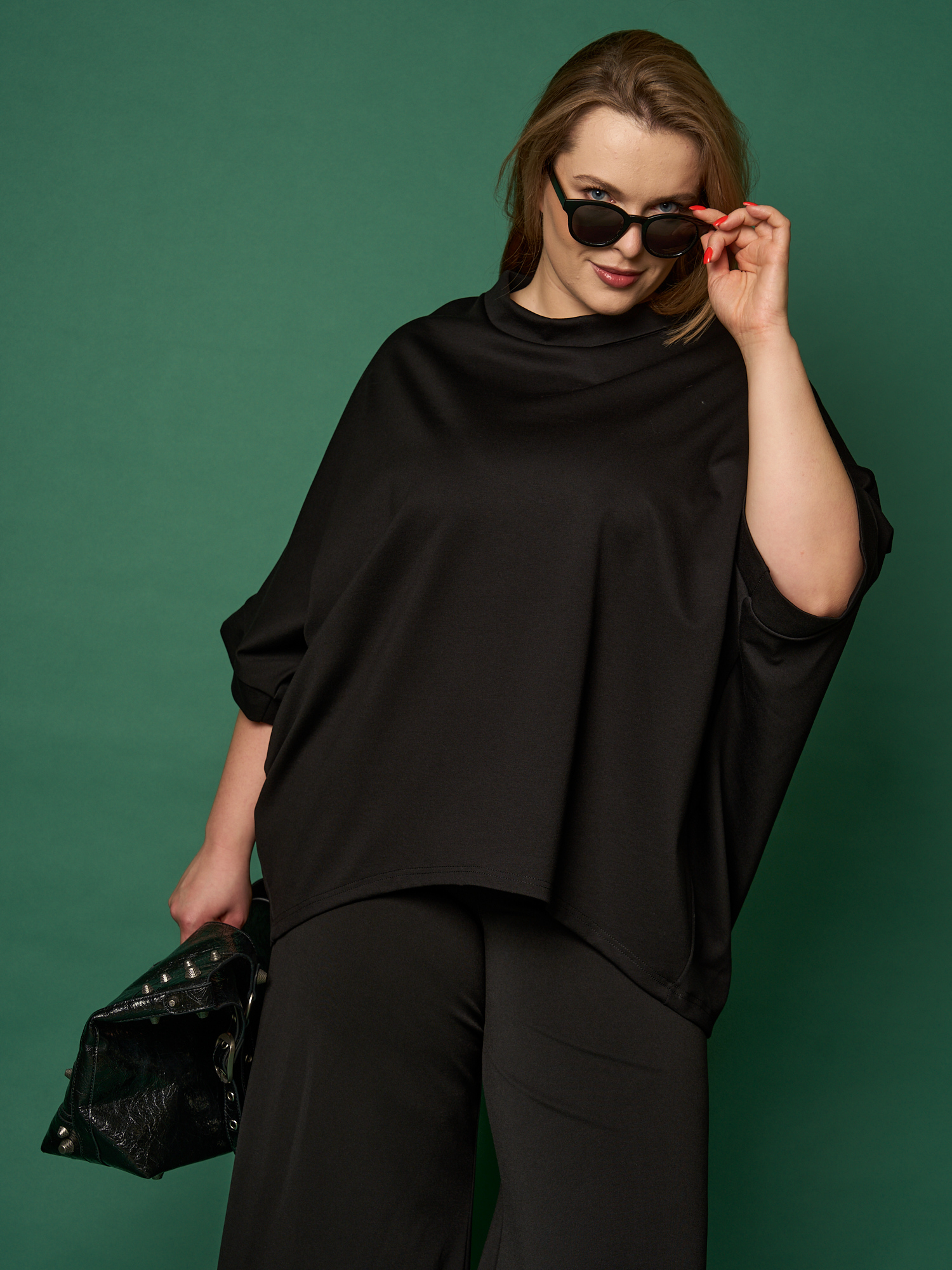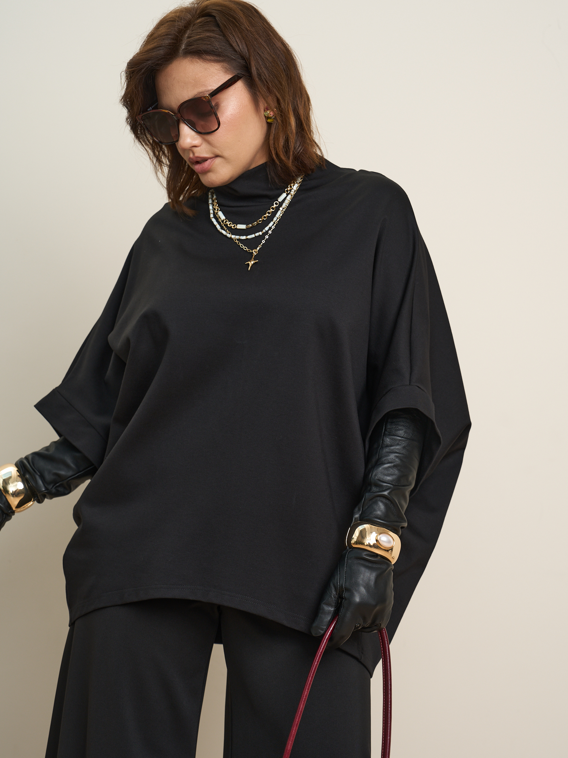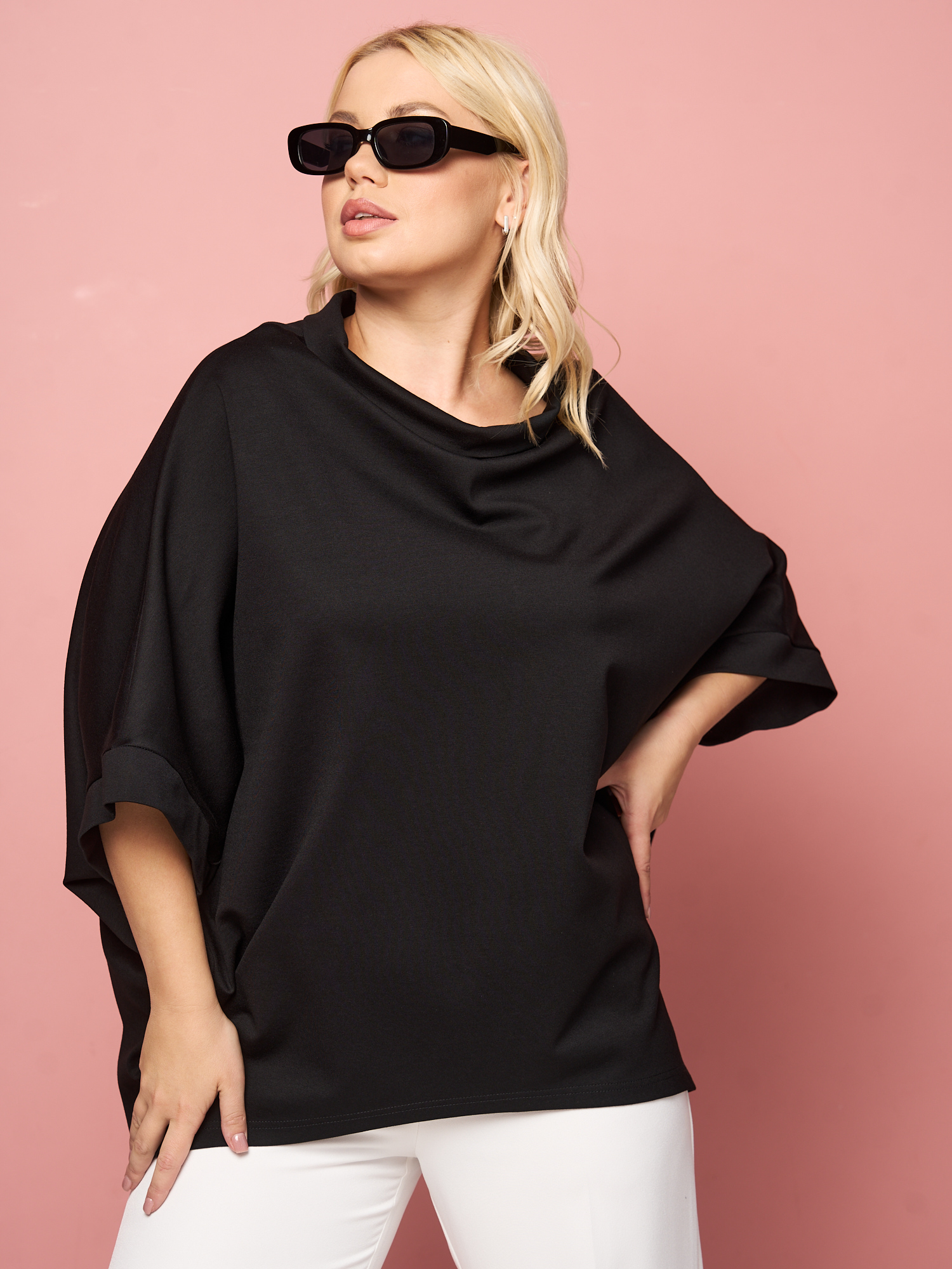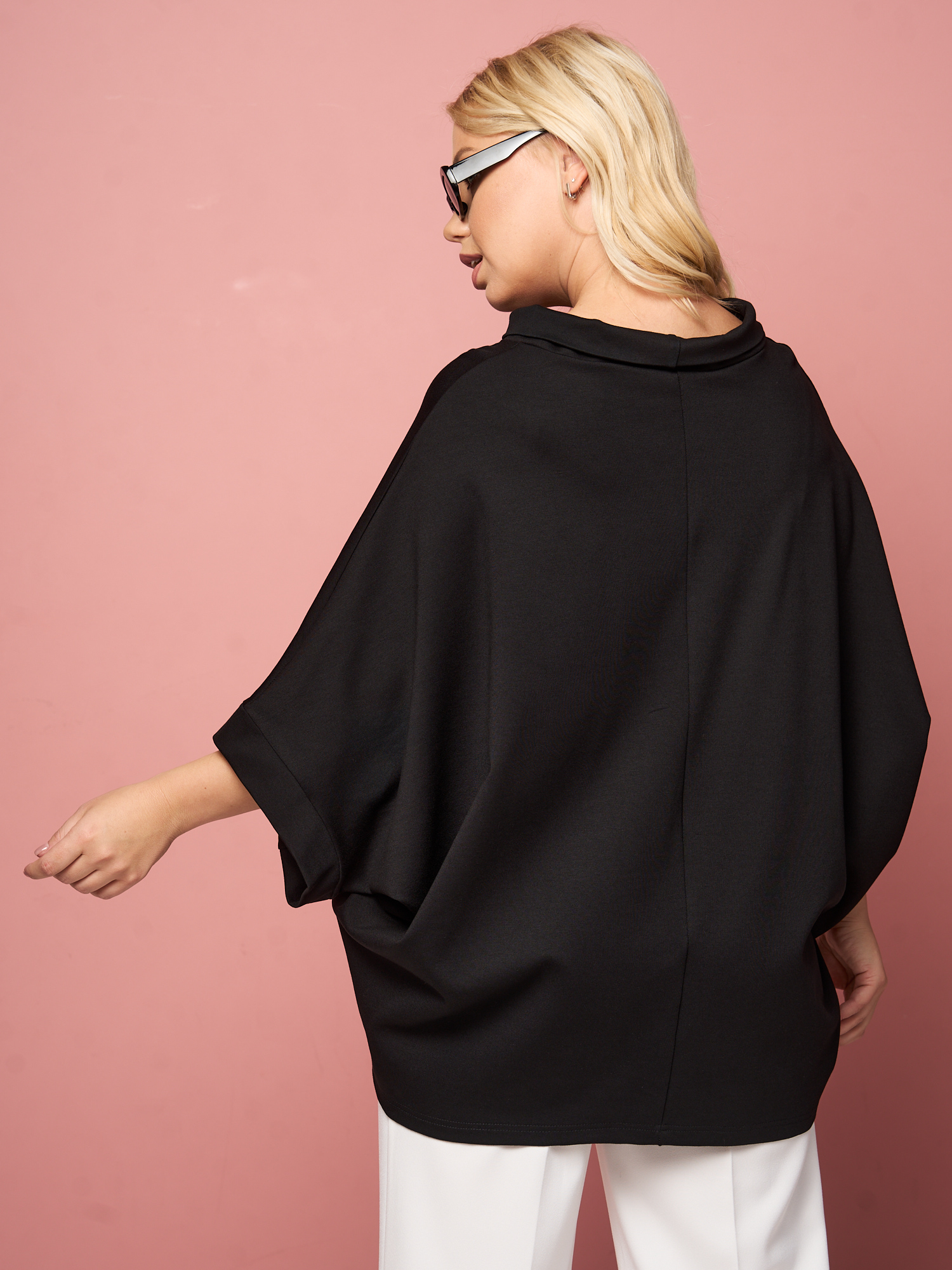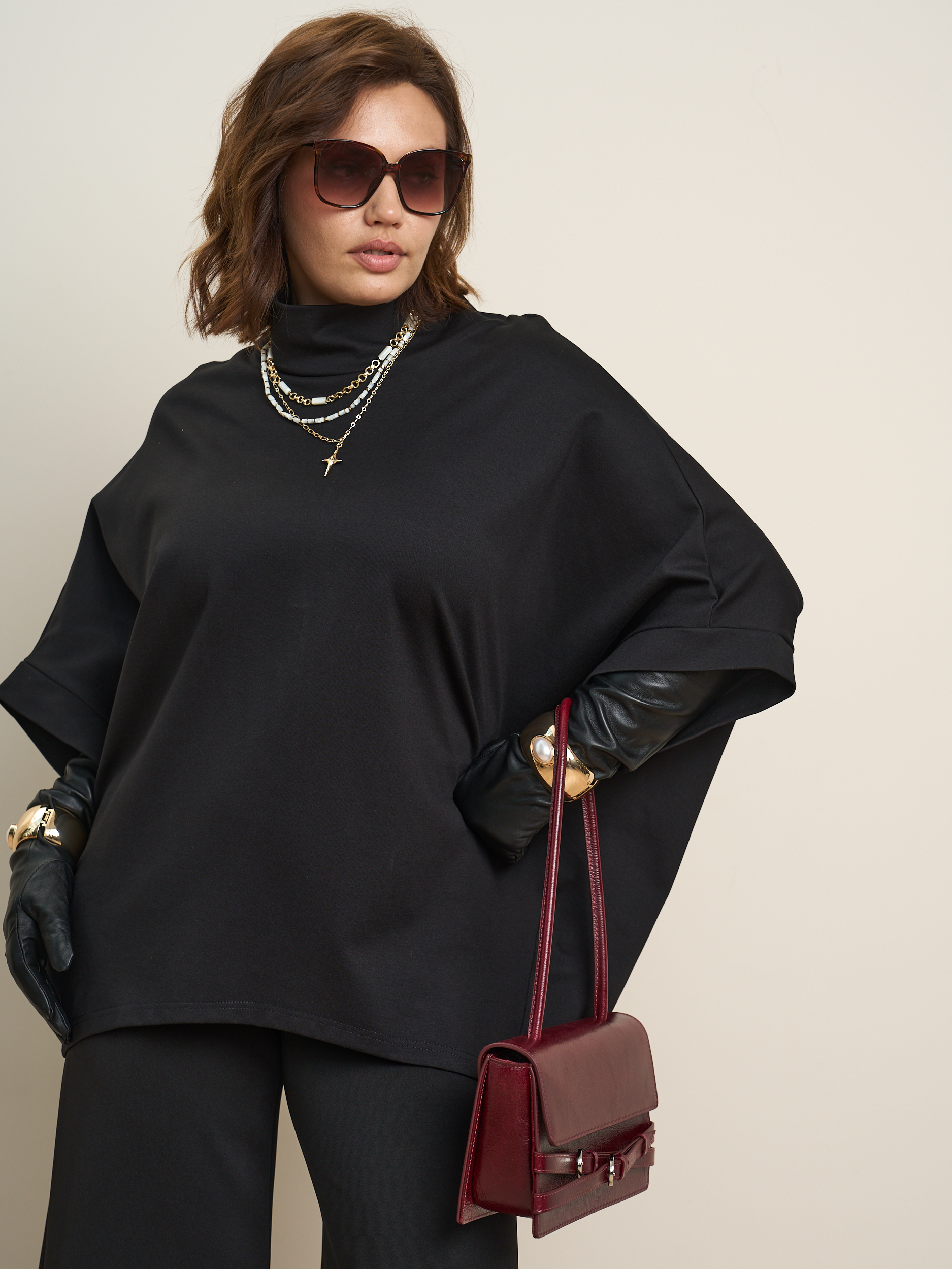 Трикотажная свободная туника - блузон в стиле бохо. Свободный крой. Округлый ворот-хомут. Манжет на рукаве. Плотный трикотаж премиального качества.