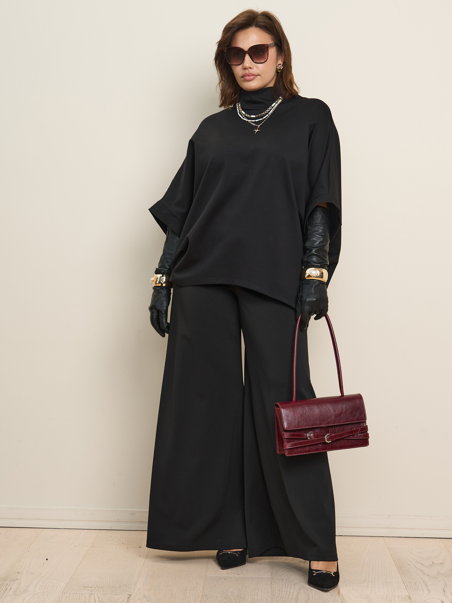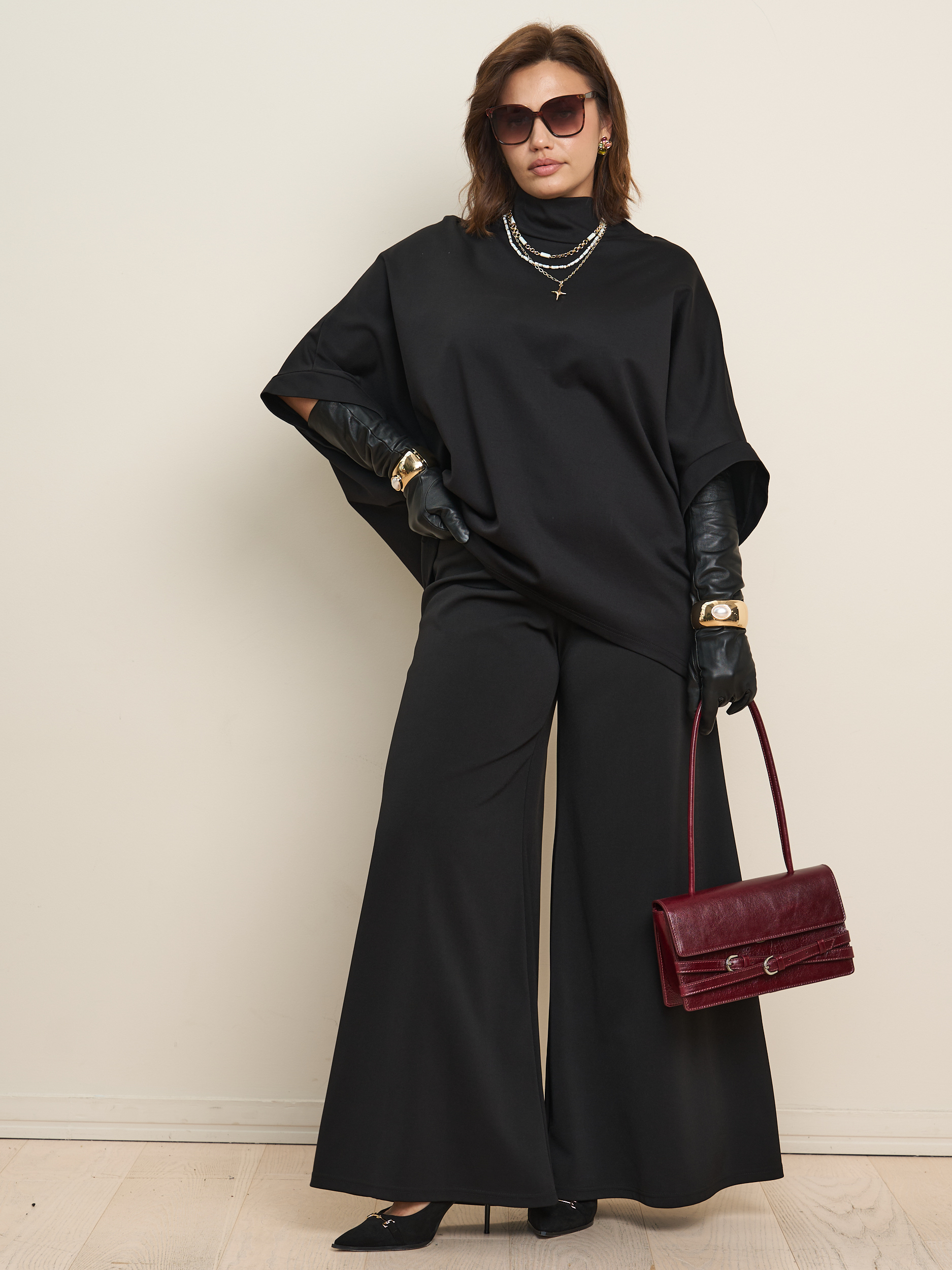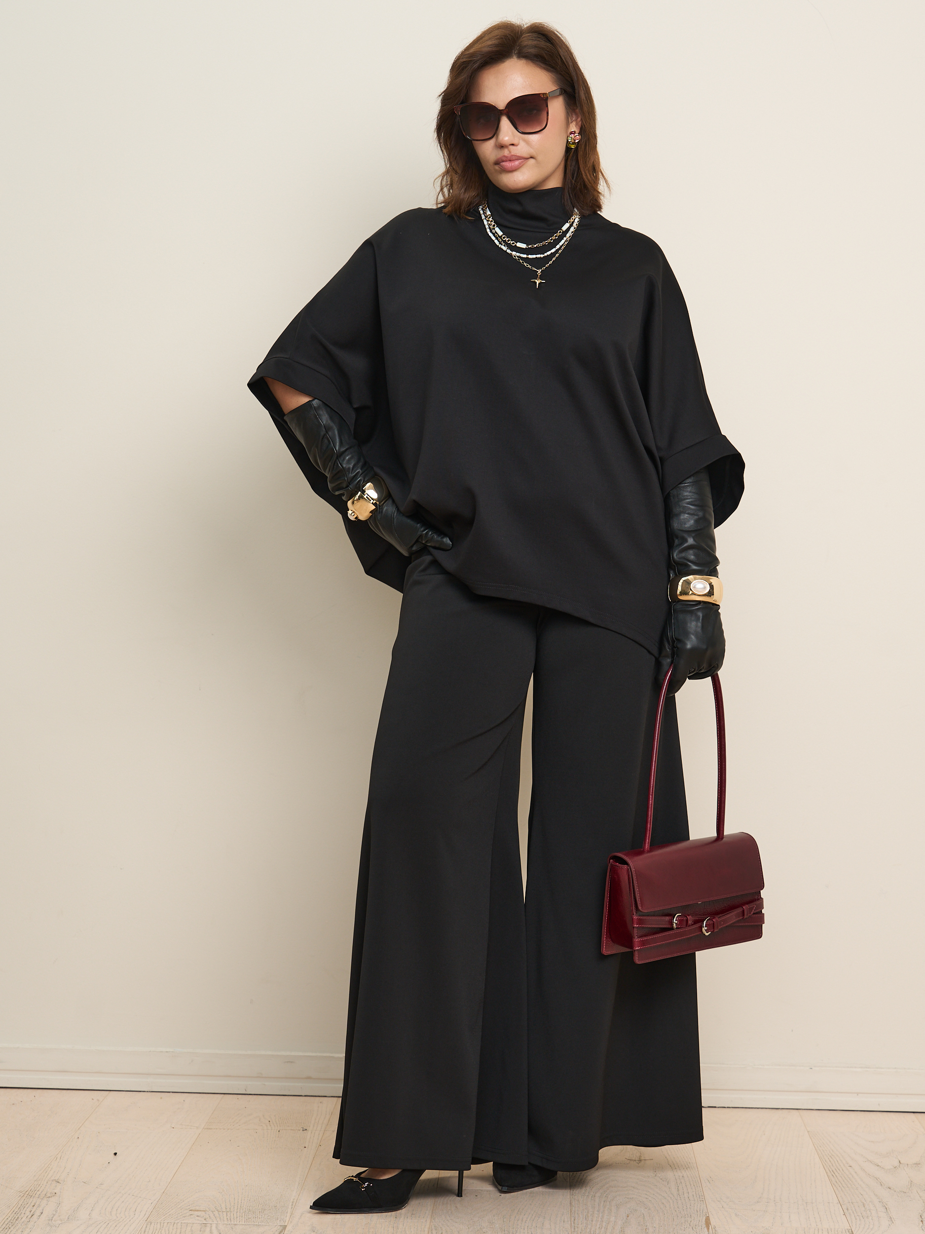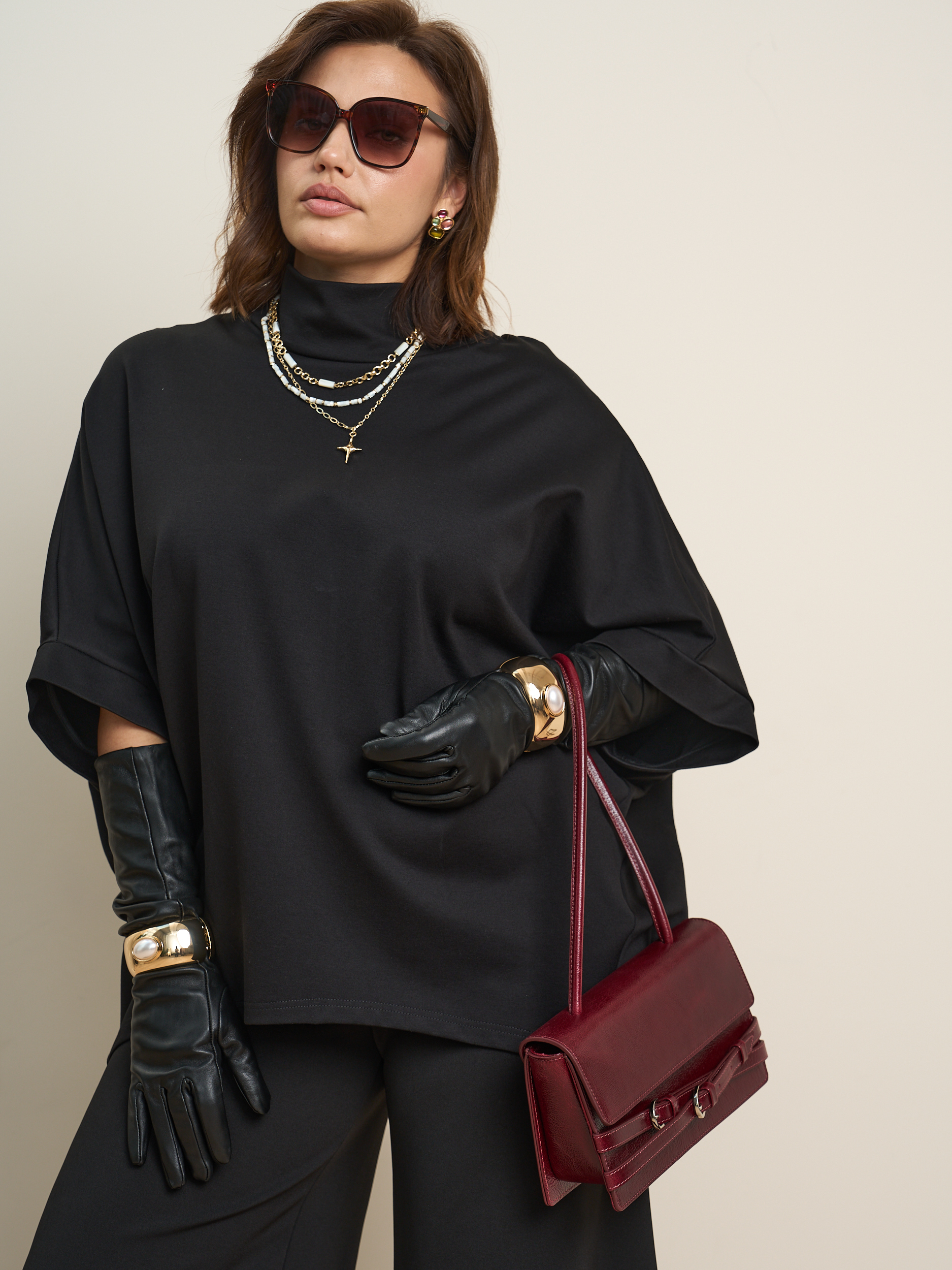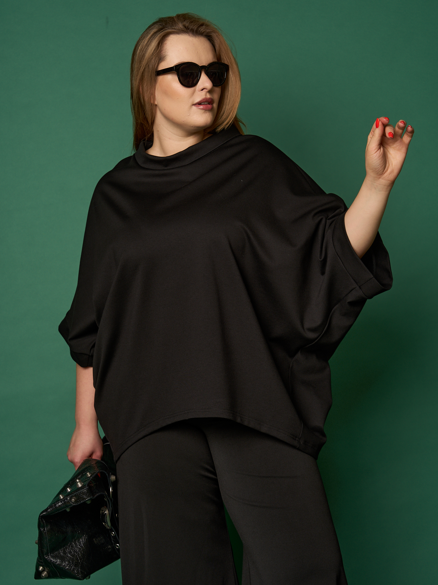 Трикотажная свободная туника - блузон в стиле бохо. Свободный крой. Округлый ворот-хомут. Манжет на рукаве. Плотный трикотаж премиального качества.