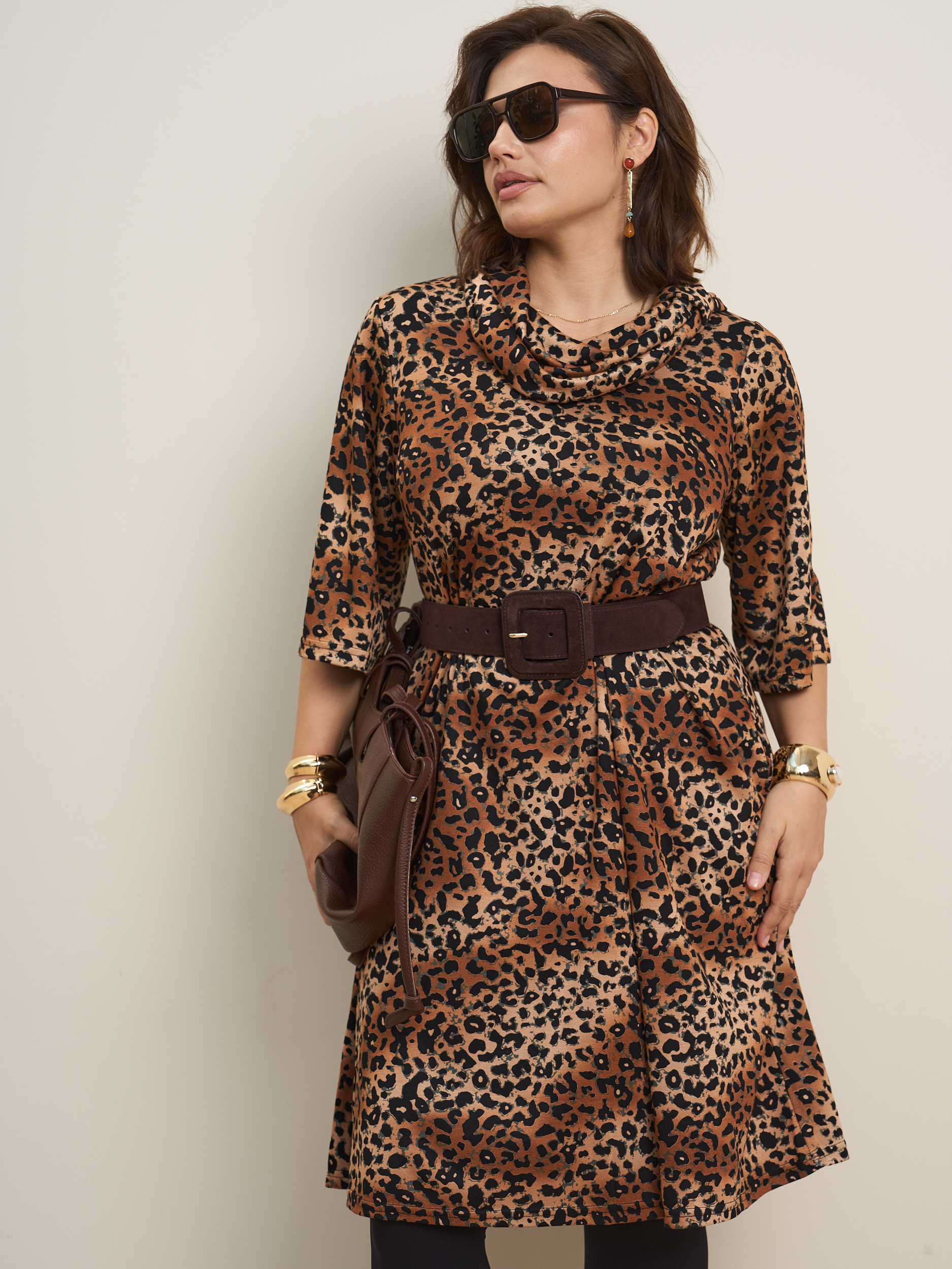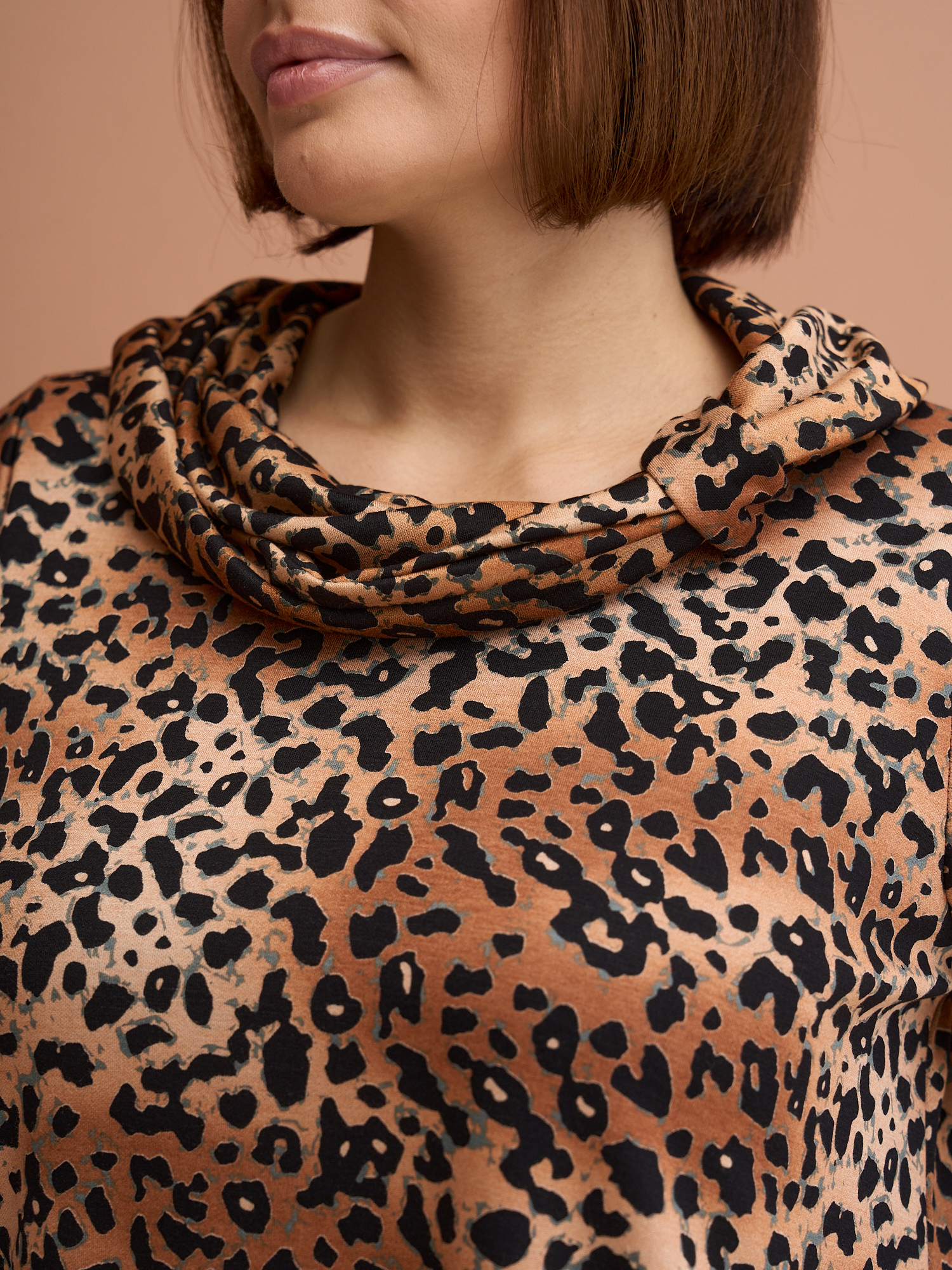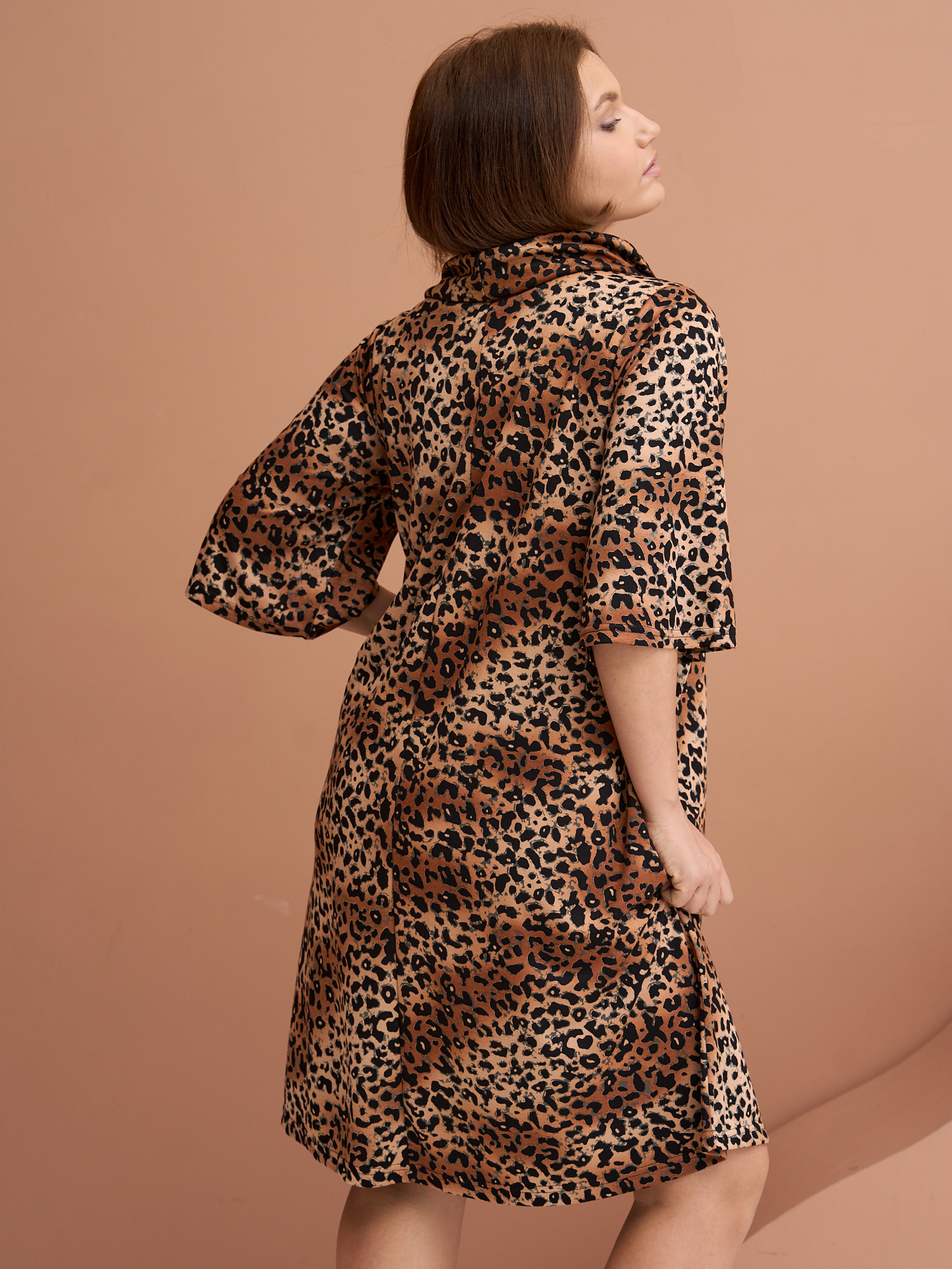 Платье женское трапеция с широкими рукавами, воротник хомут. Длина до колена. Ткань - трикотаж мягкий плательный с принтом.