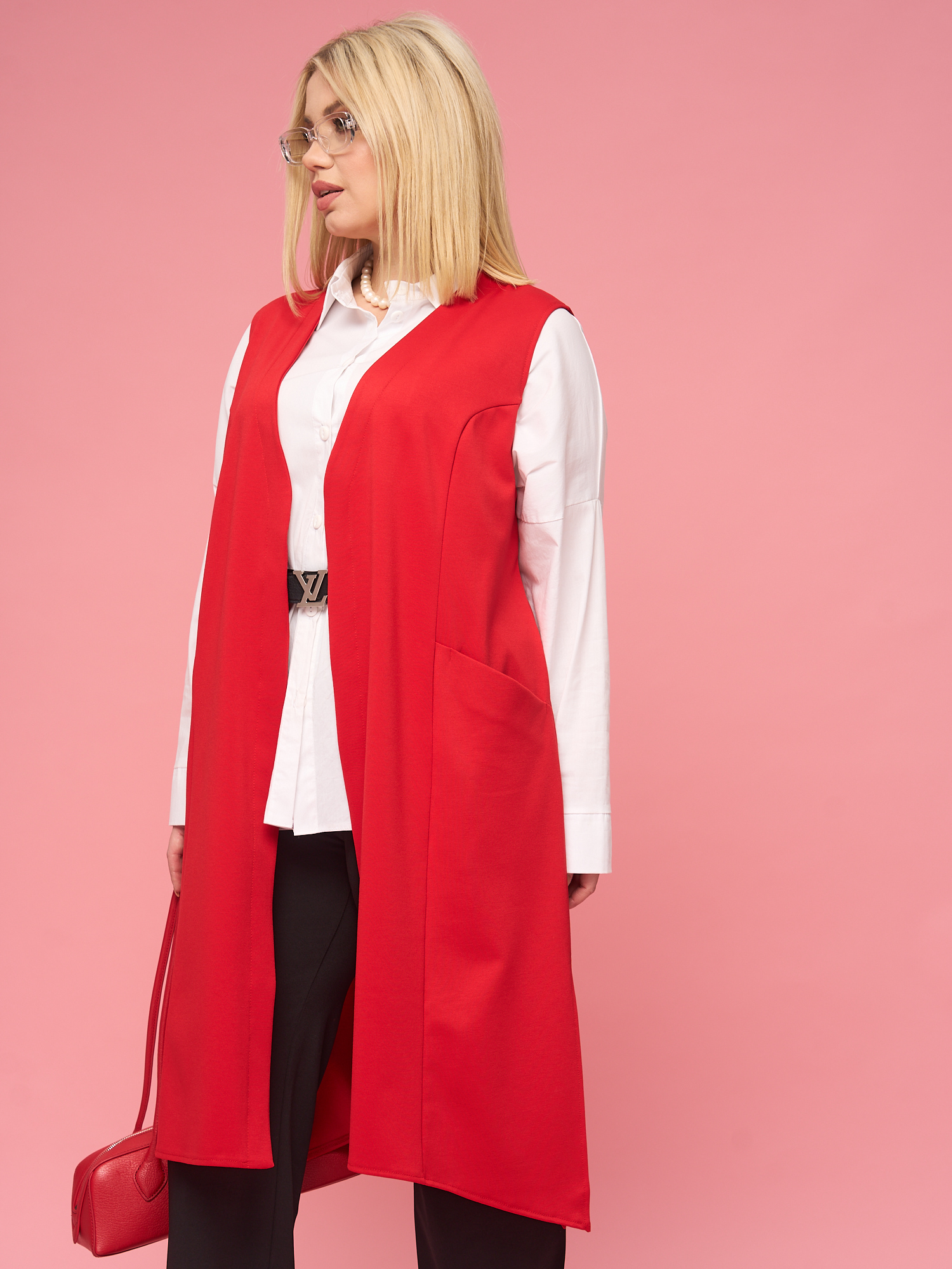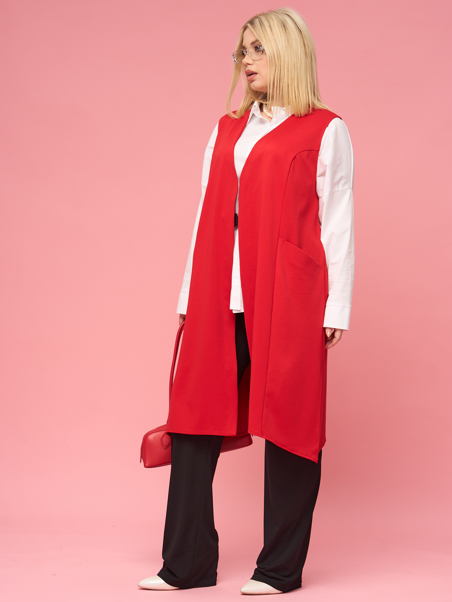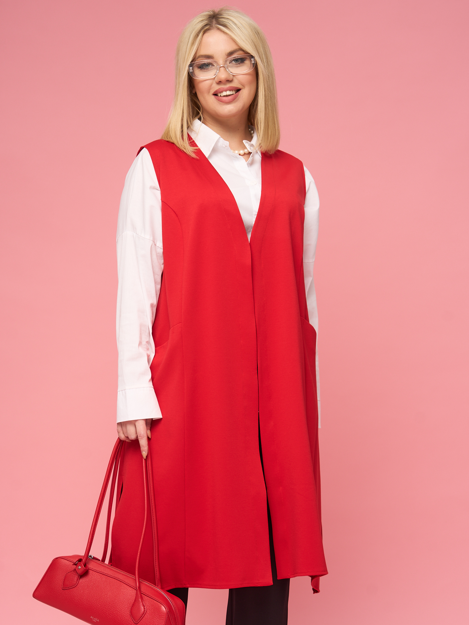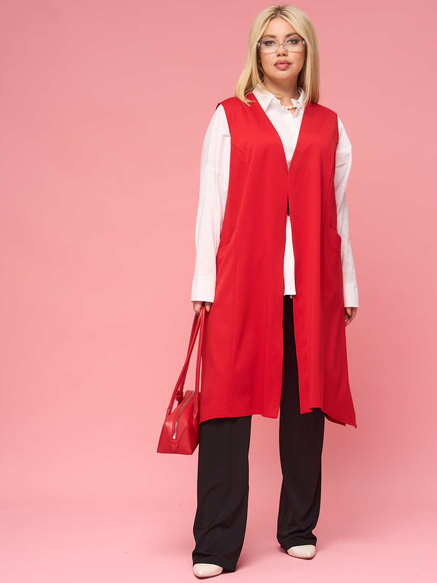 Легкая посадка жилета украсит вас как на рабочем месте, так и на прогулке – стройнящий прямой фасон oversize без рукавов удобен и весьма изящно смотрится. Силуэт жилета поможет скрыть проблемные зоны. Ткань приятная и мягкая на ощупь.