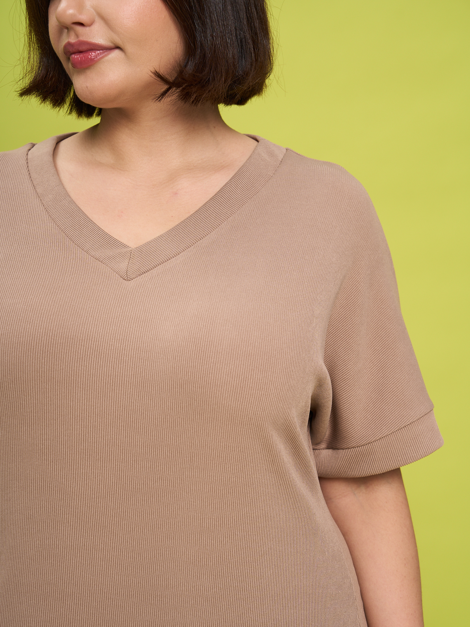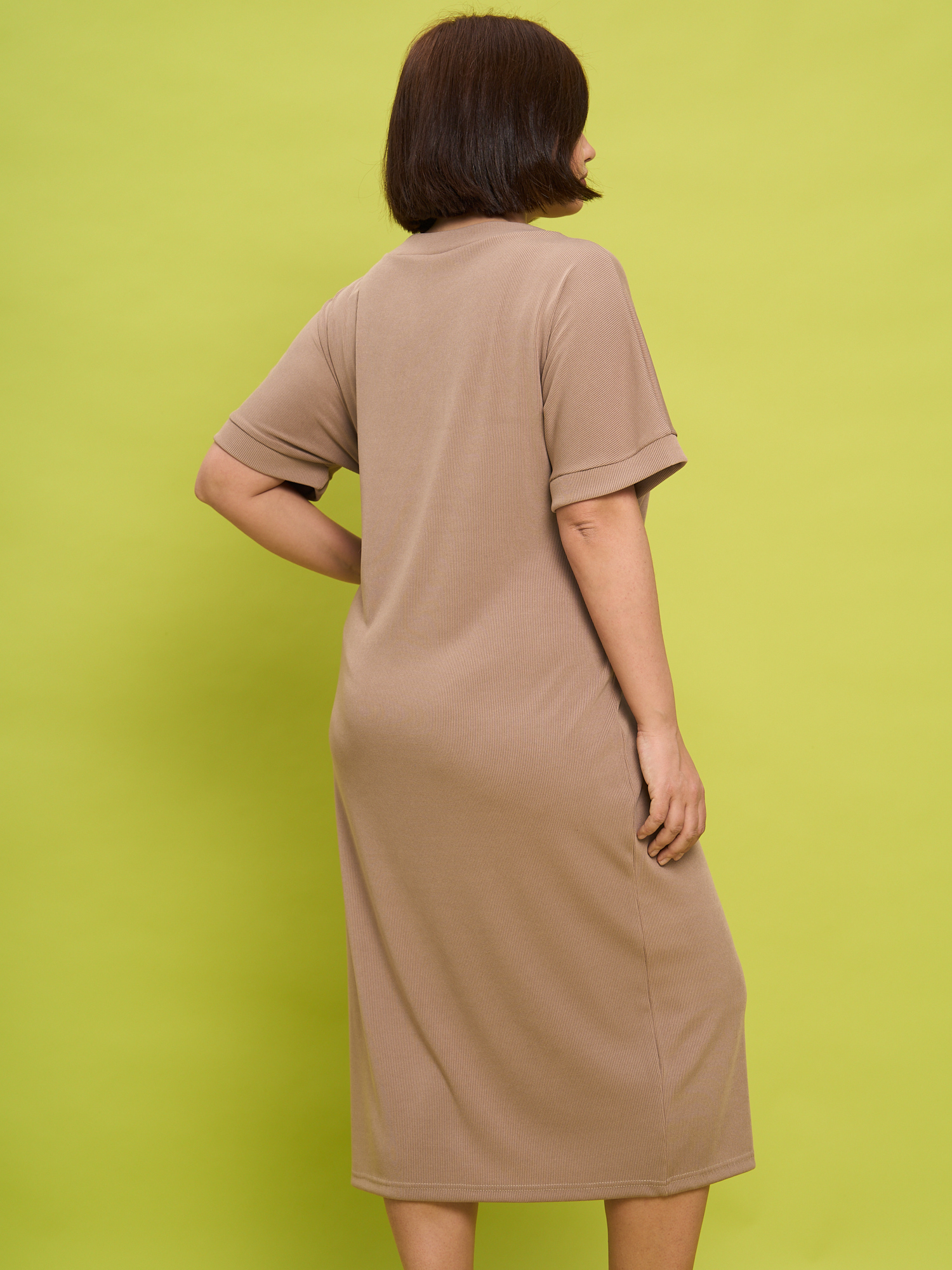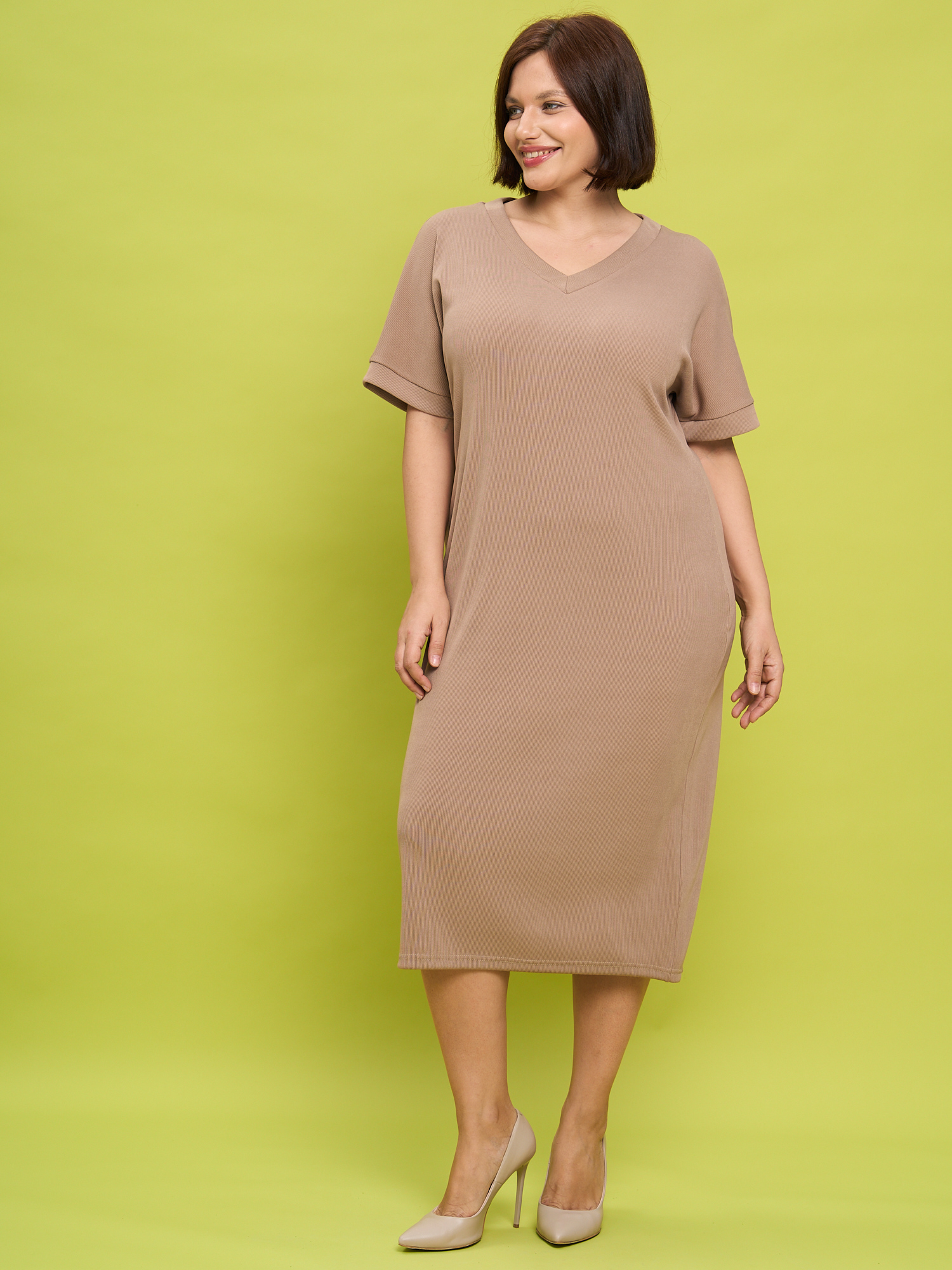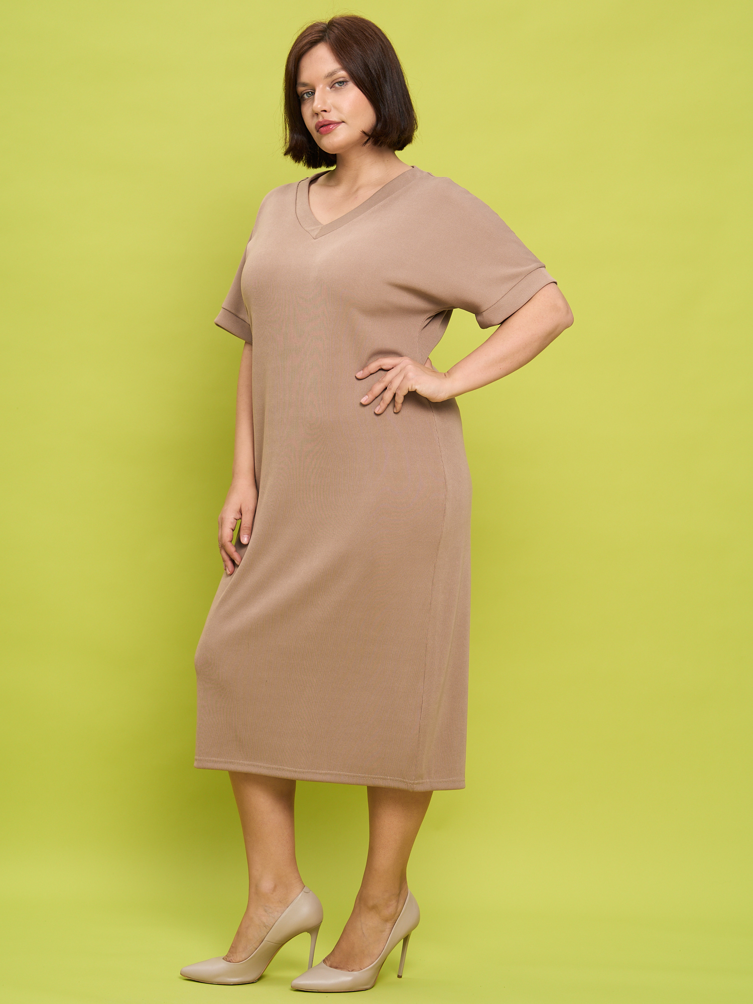 Повседневное платье. Полуприлегающий крой. Воротник - V-образный. Спущенный рукав. Длина миди. Ткань - летний трикотаж лапша.