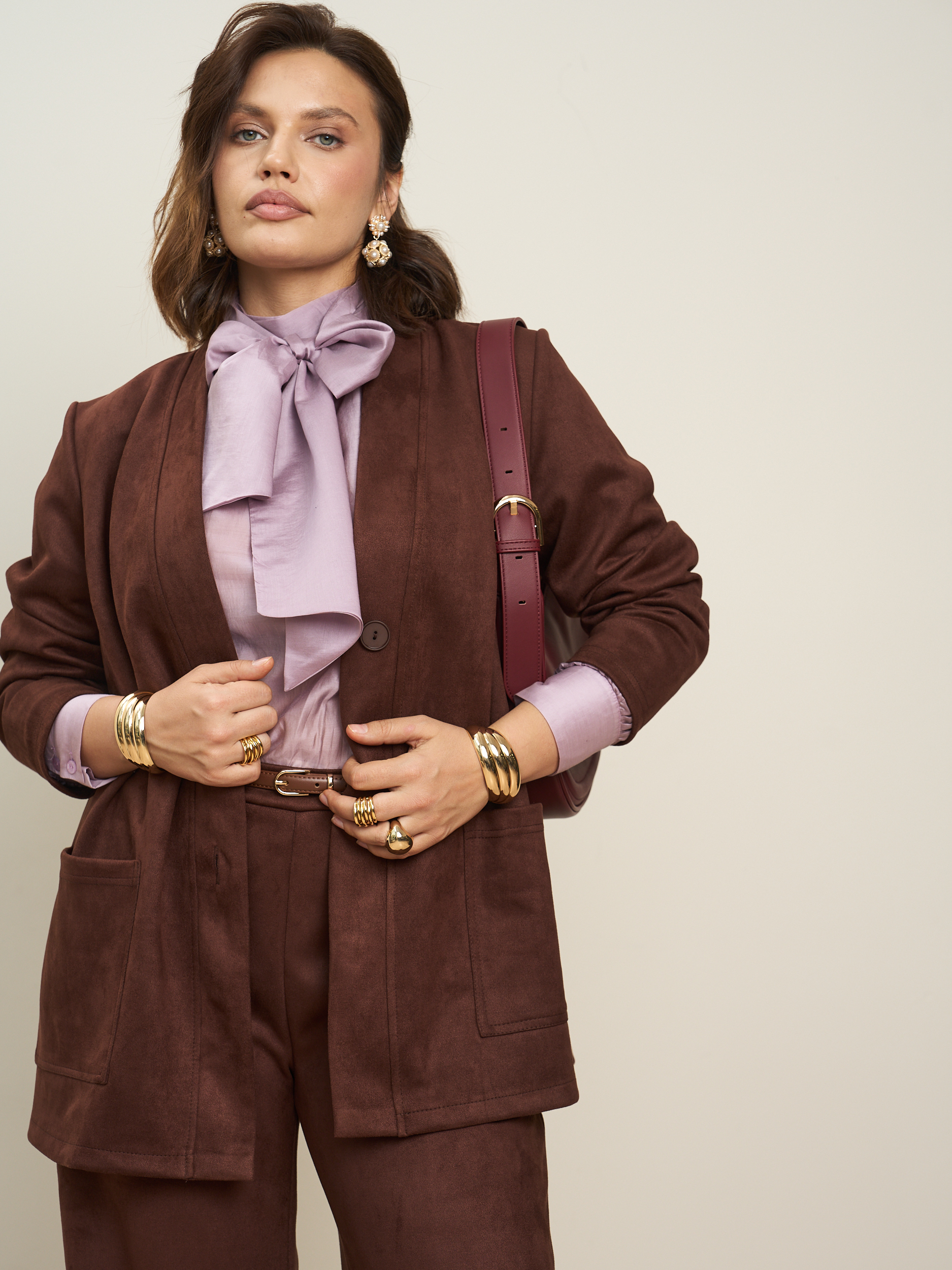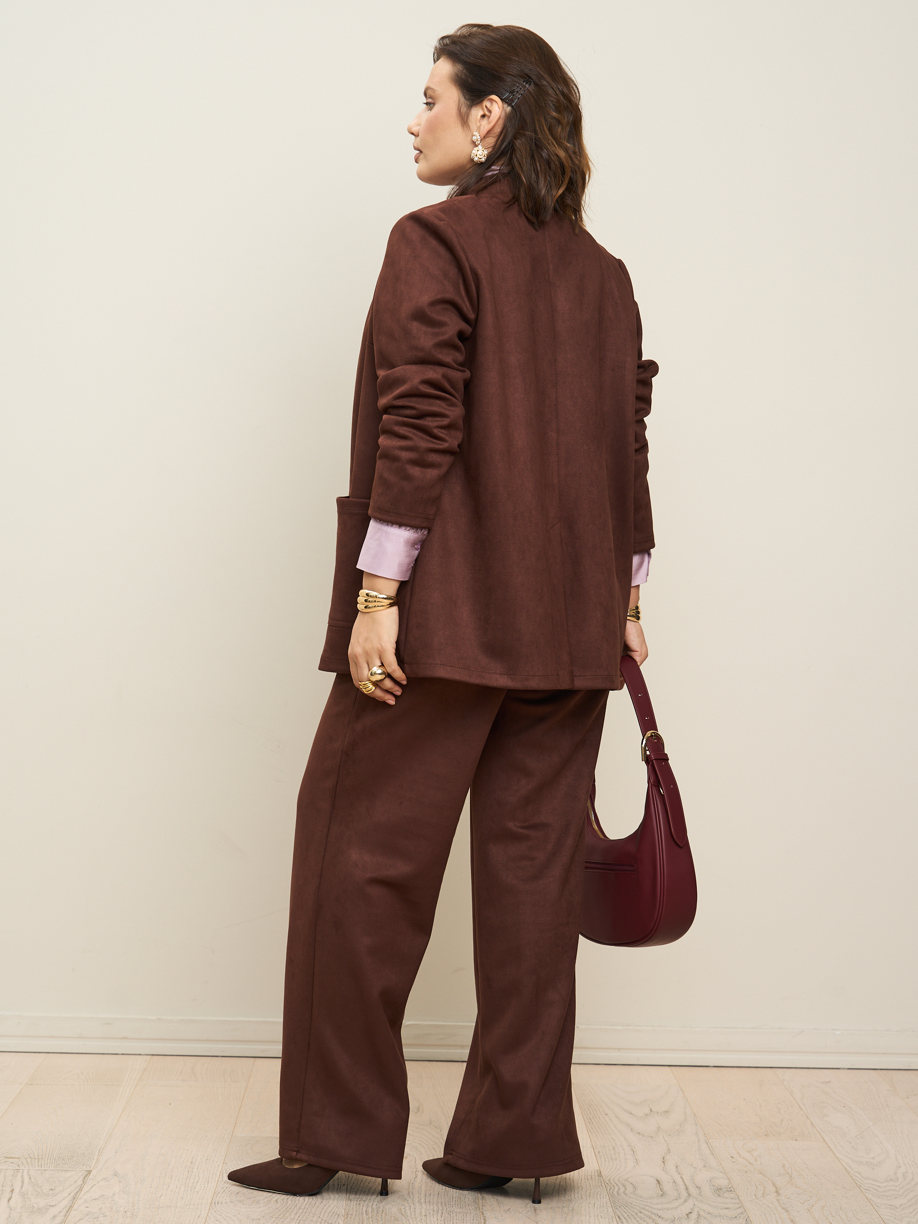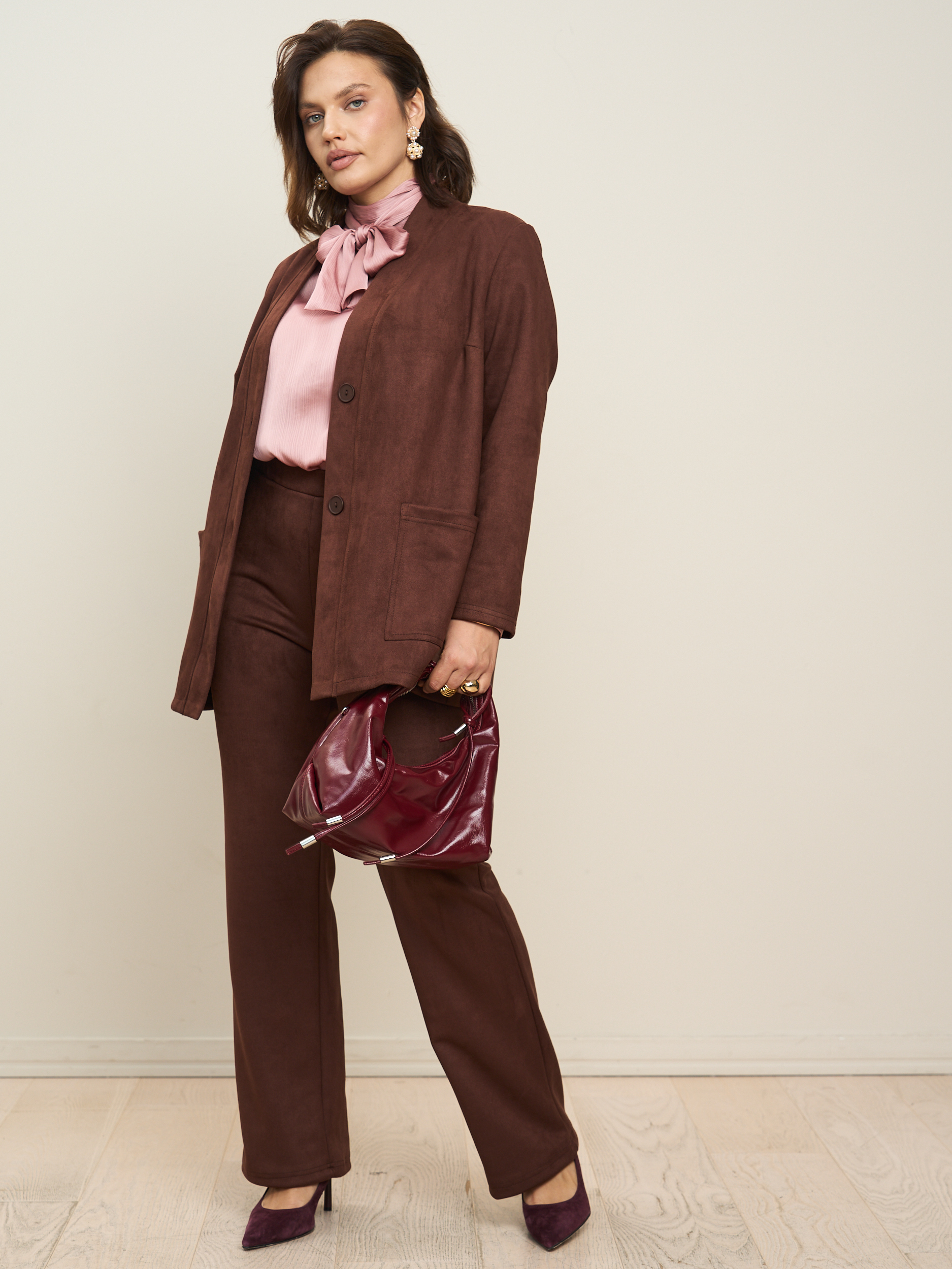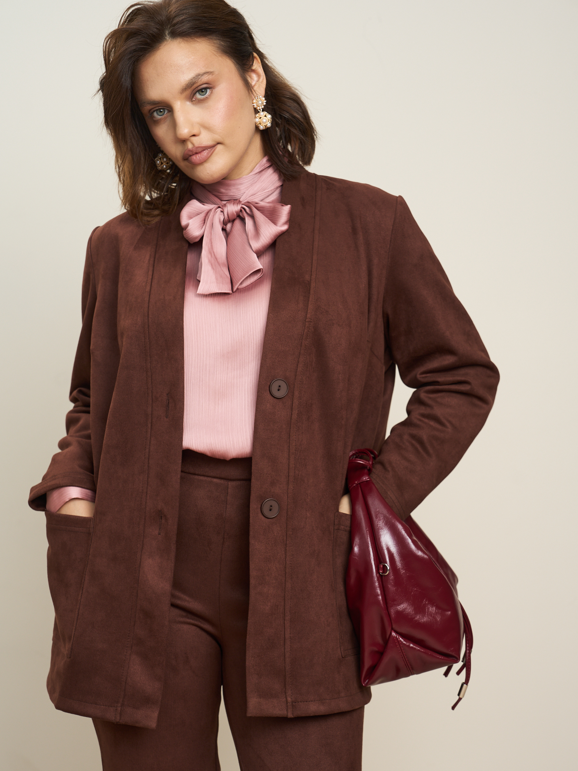 Жакет кардиган из замши на трикотажной основе.Ткань - плотный трикотаж с замшевой текстурой, экозамша - на осень-зиму. Посадка легкий оверсайз. Накладные карманы. Без подклада.