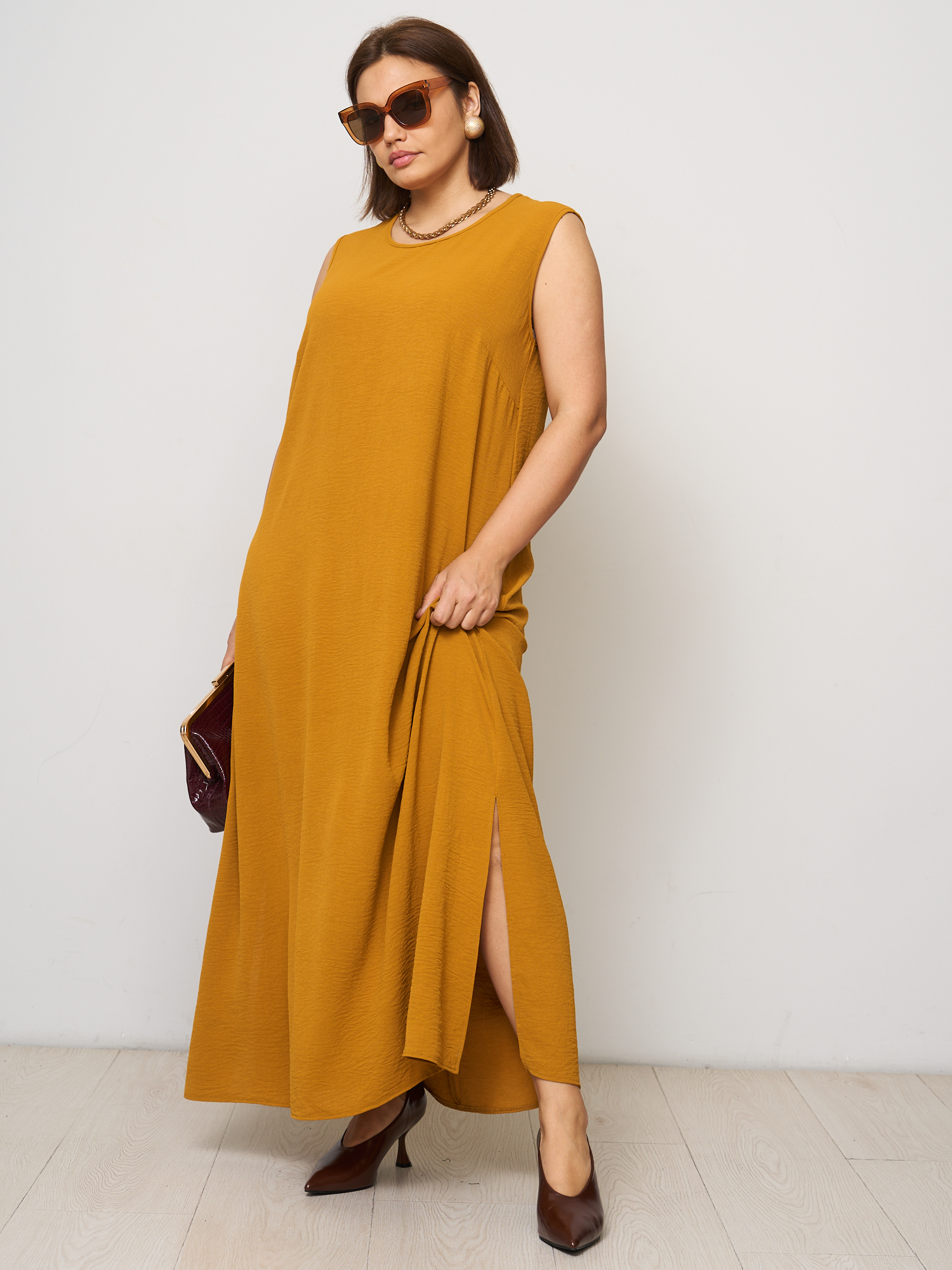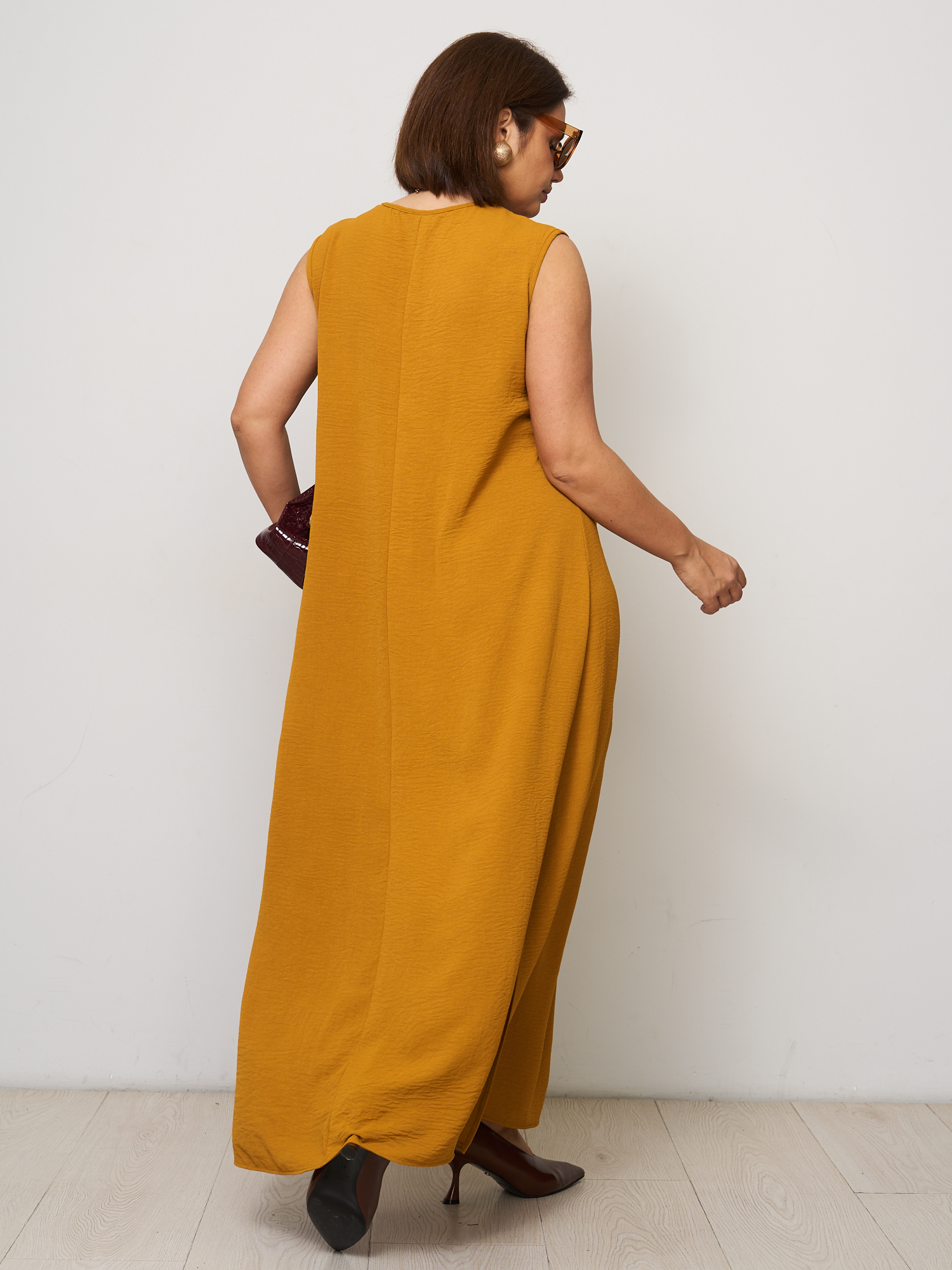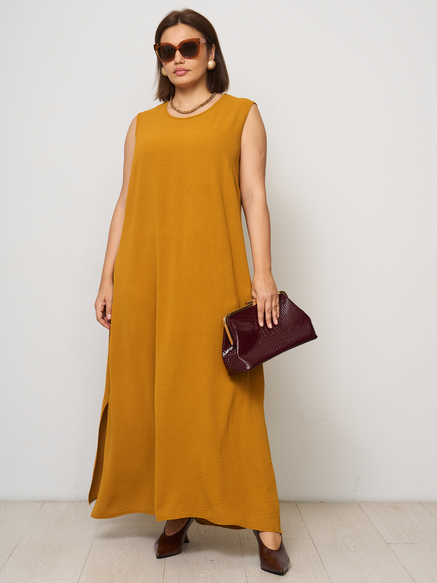Летний сарафан из ткани жатка. Полуприлегающий по фигуре с небольшим расклешением к низу.