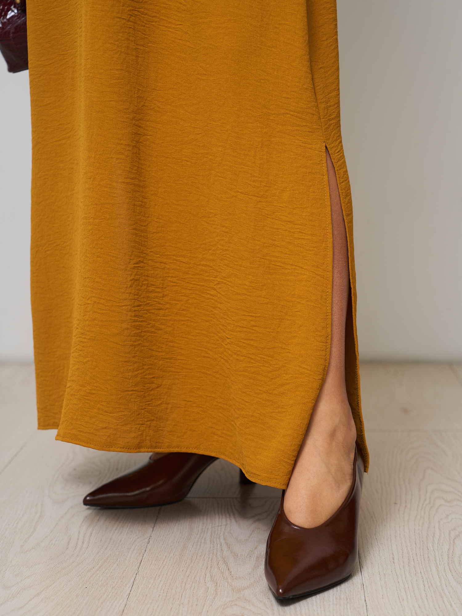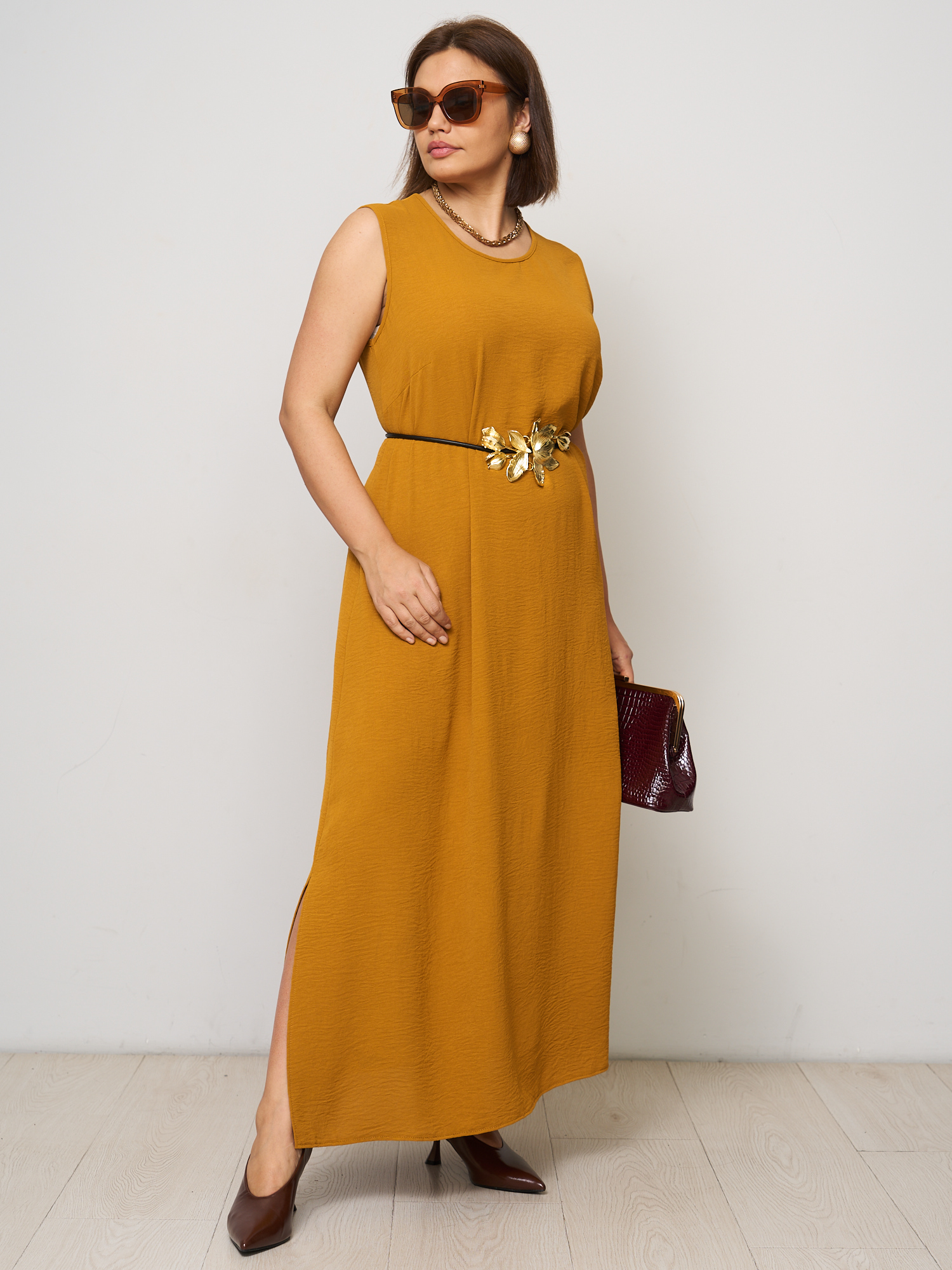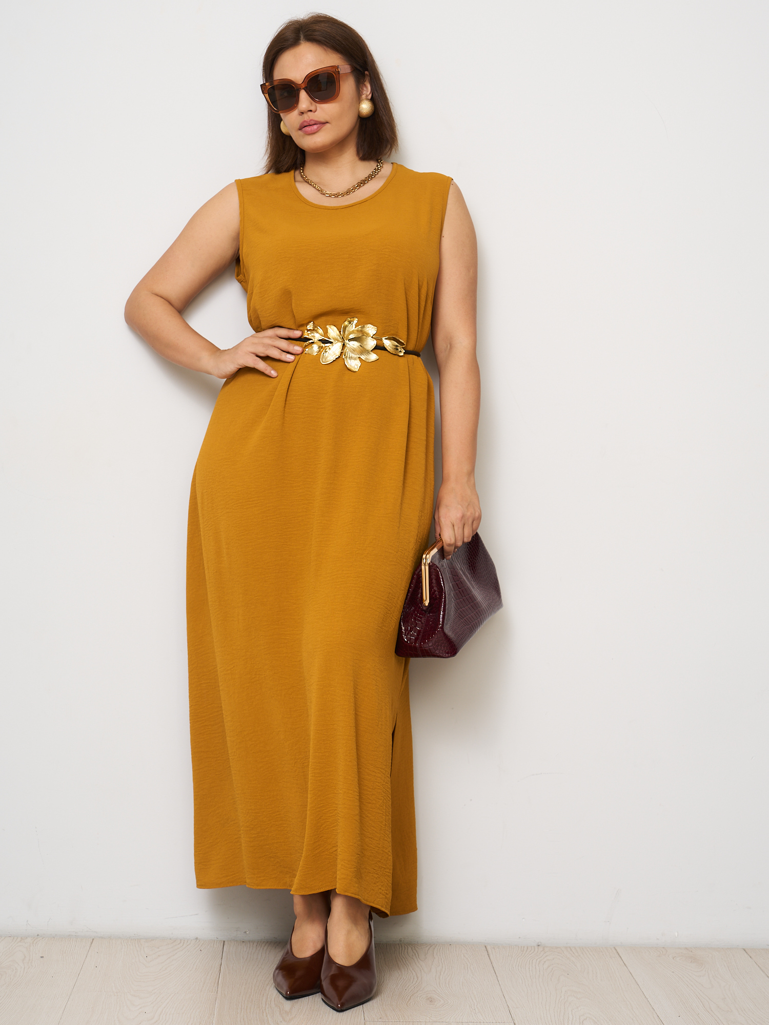 Летний сарафан из ткани жатка. Полуприлегающий по фигуре с небольшим расклешением к низу.