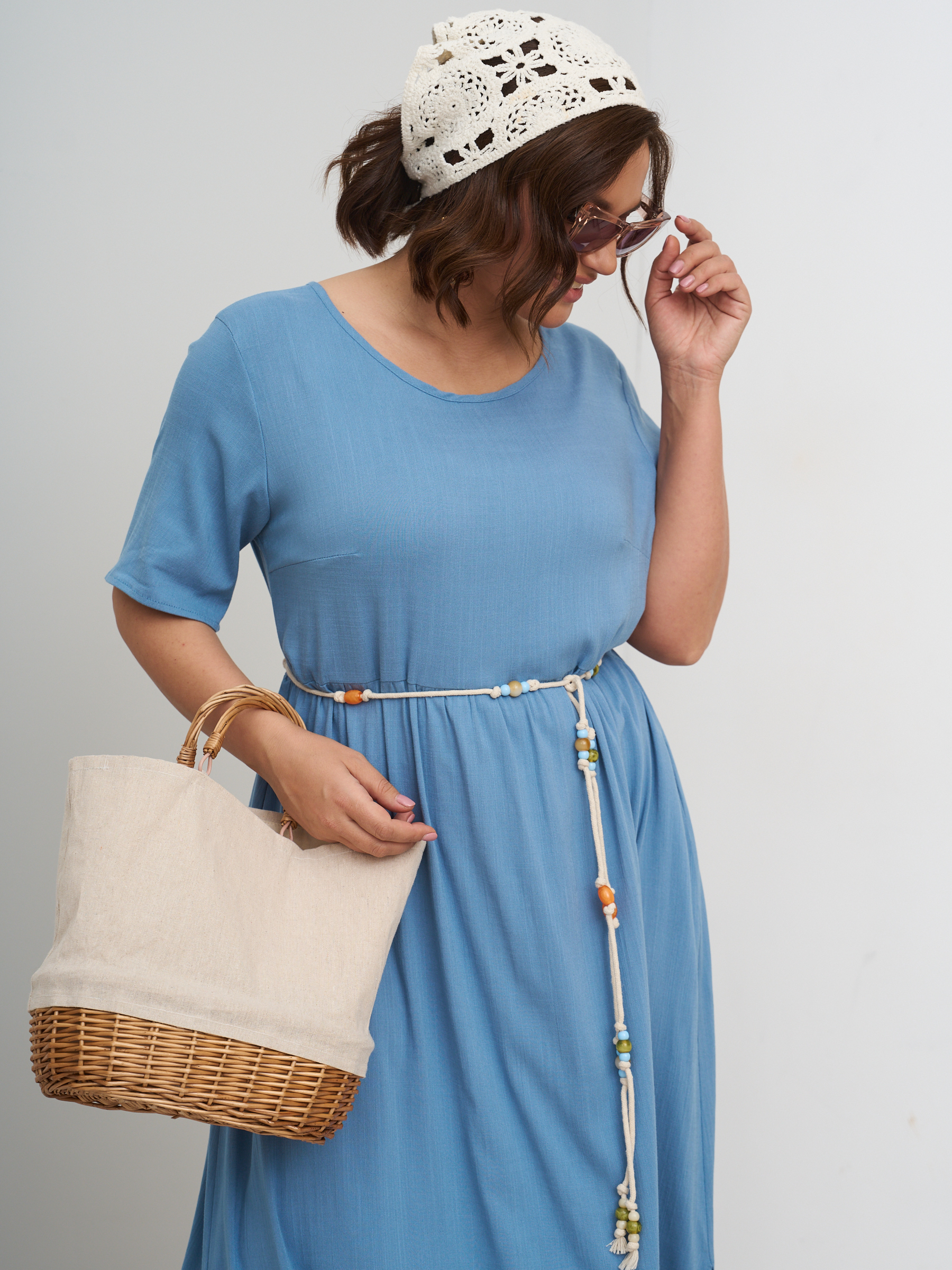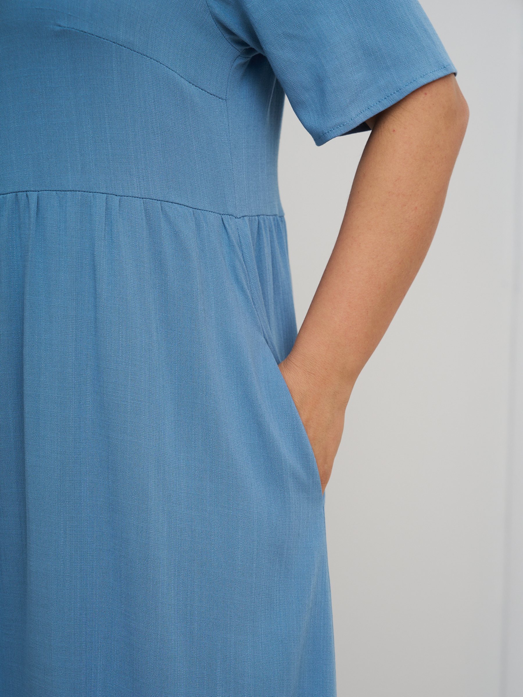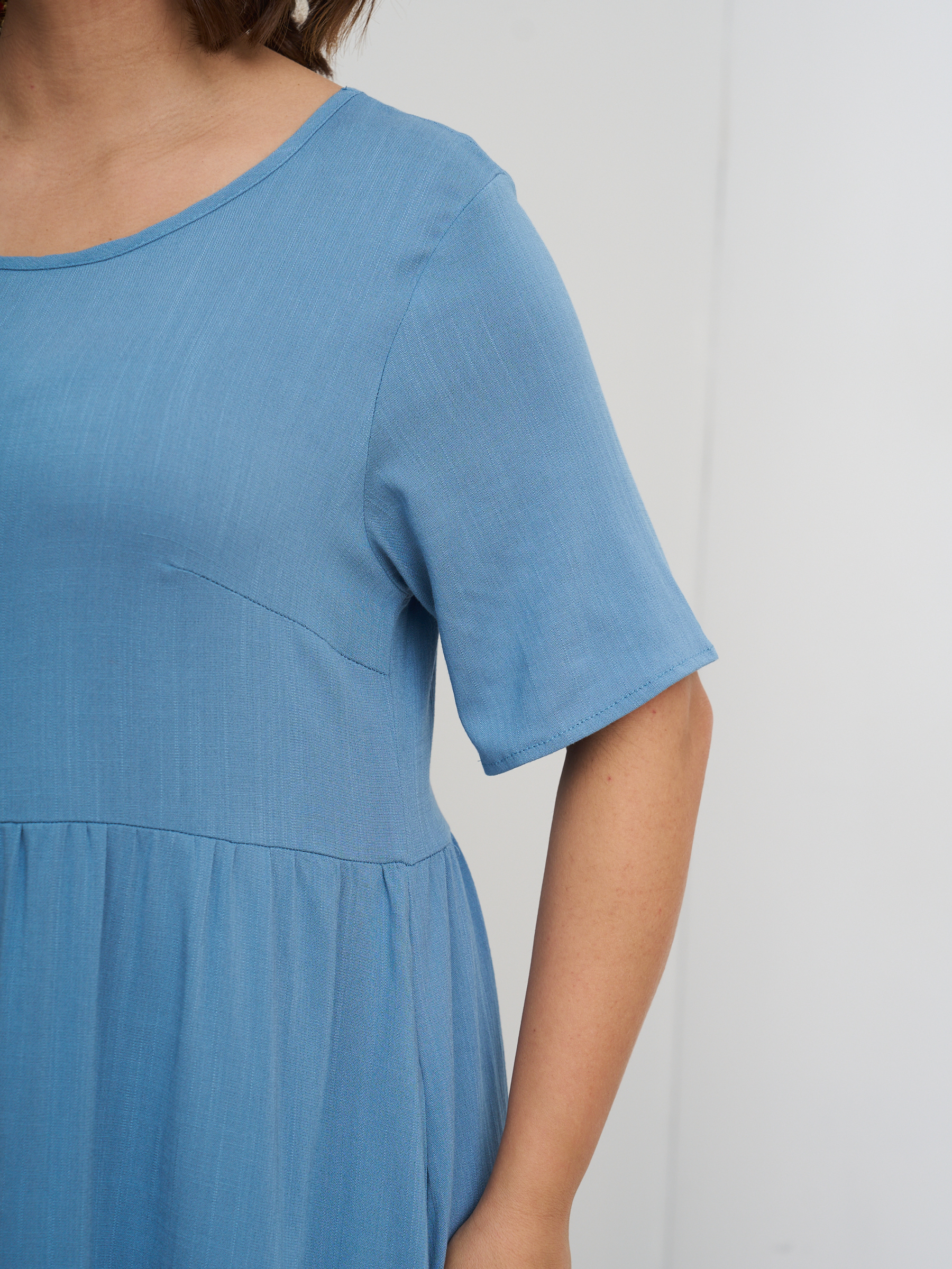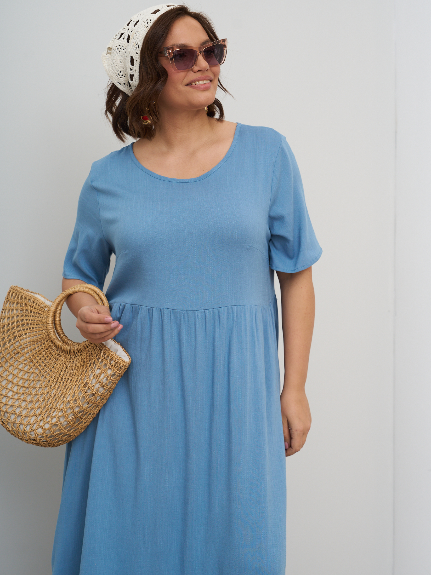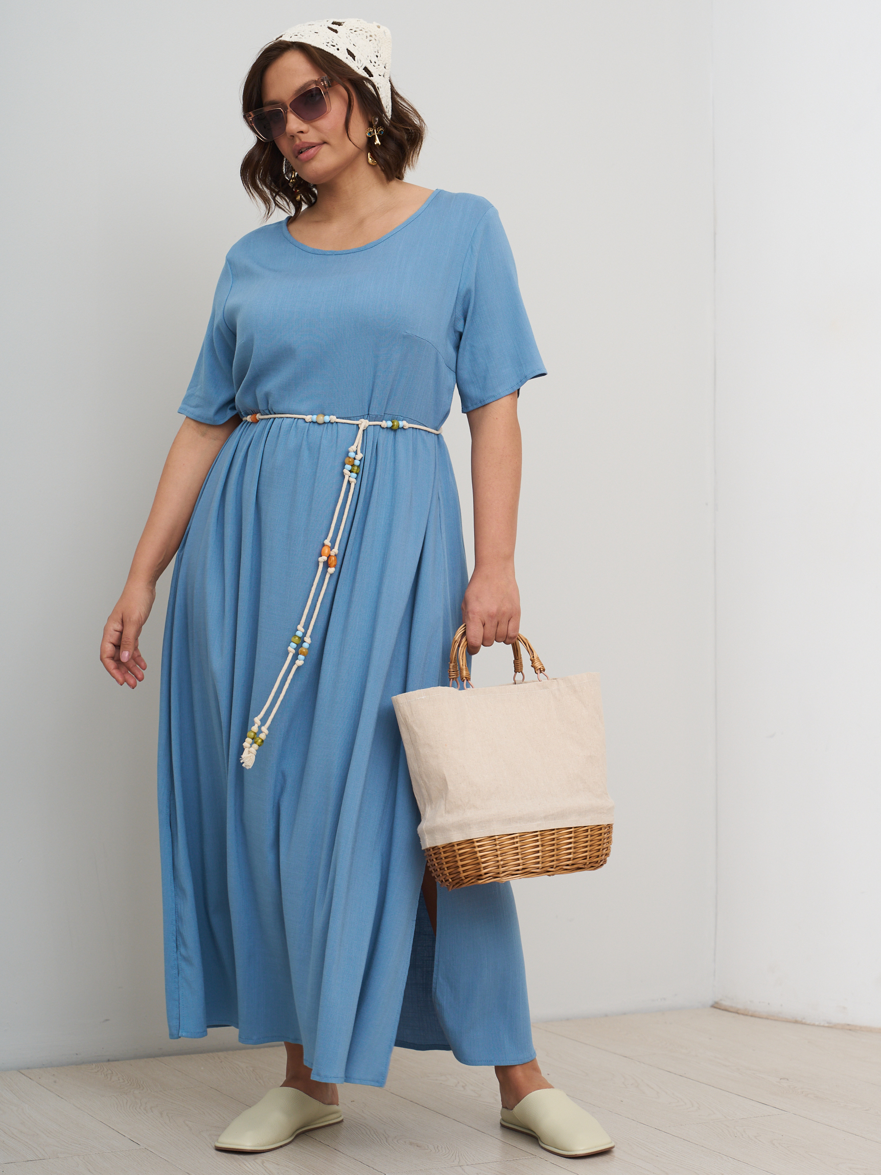 Платье летнее однотонное легкое штапельное. Отрезная полочка. Стиль бохо. На высокий рост. Разрезы по бокам. Округлый вырез горловины, свободный втачной рукав.
