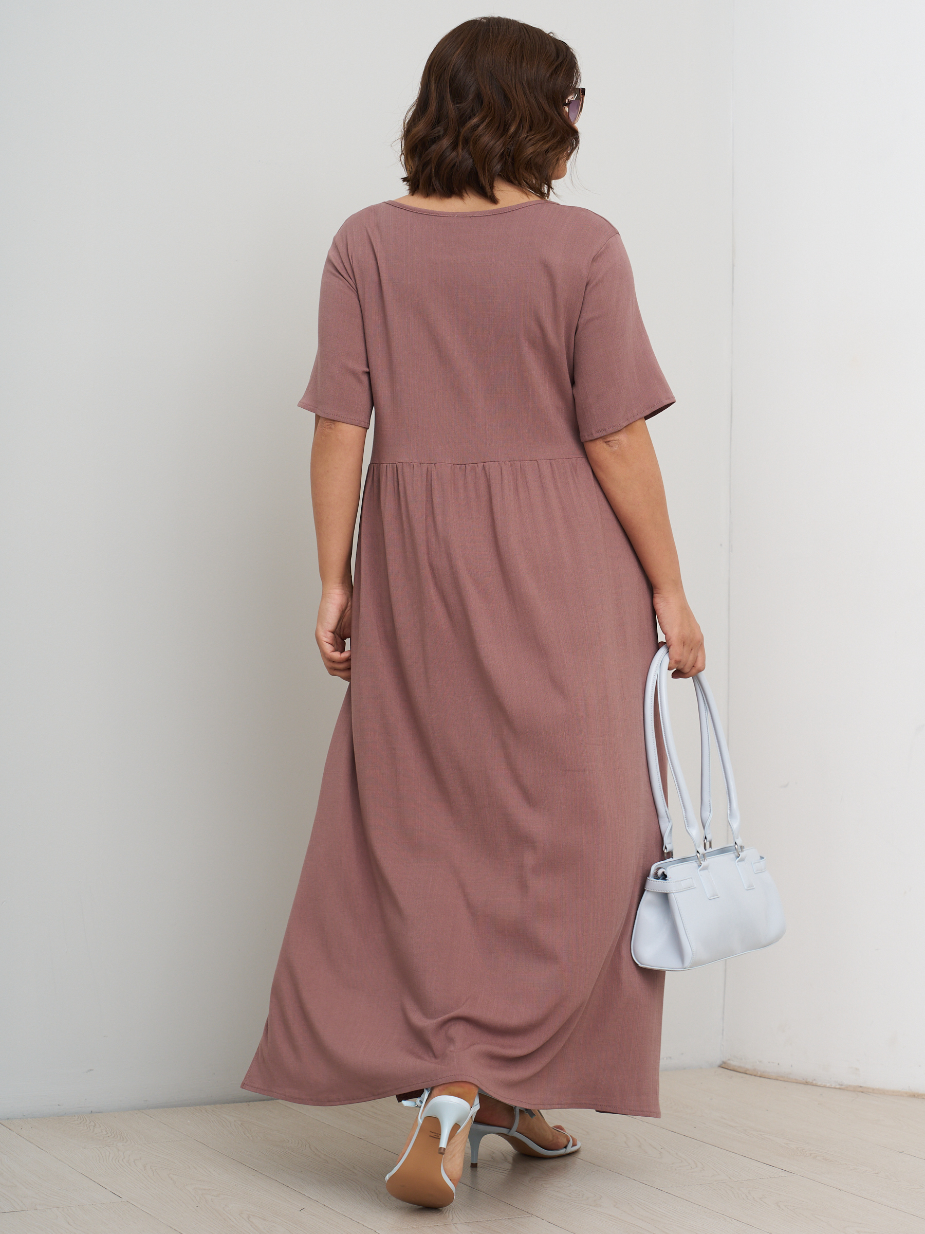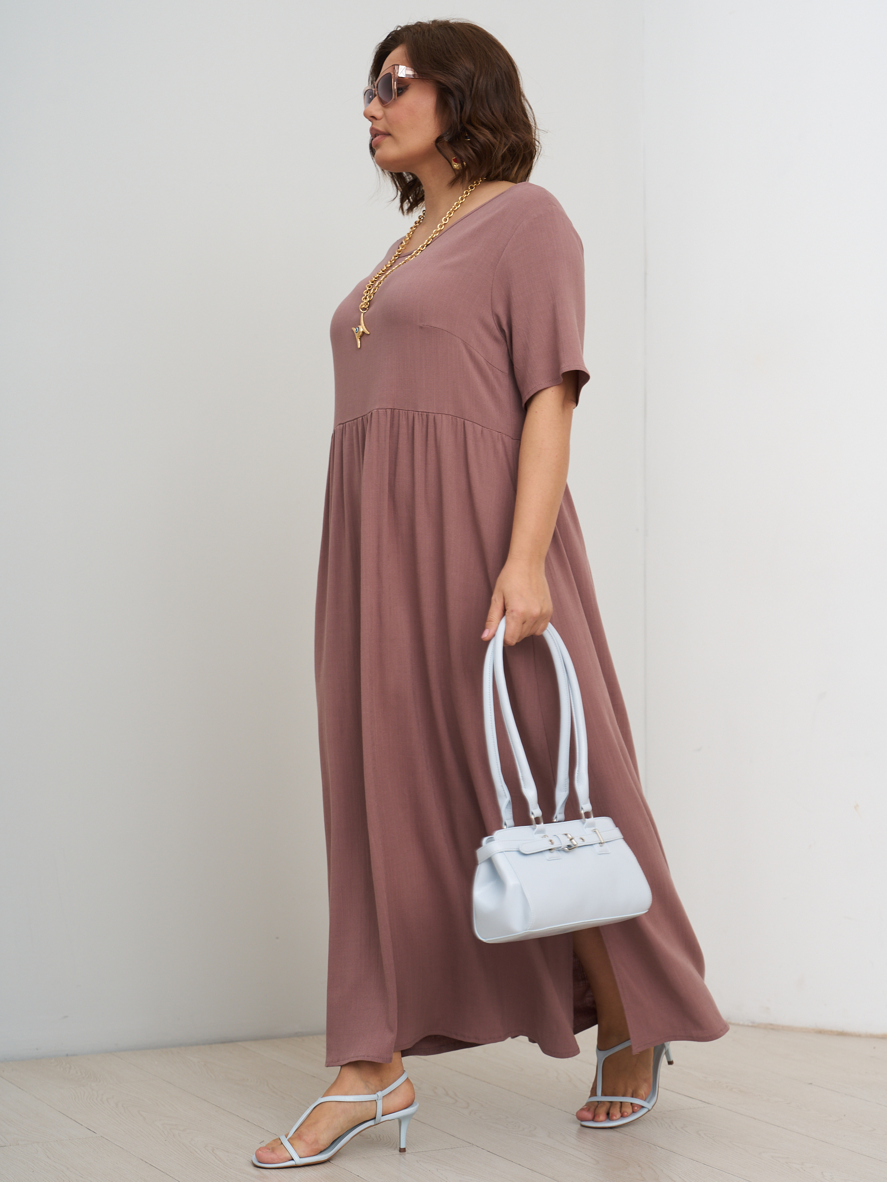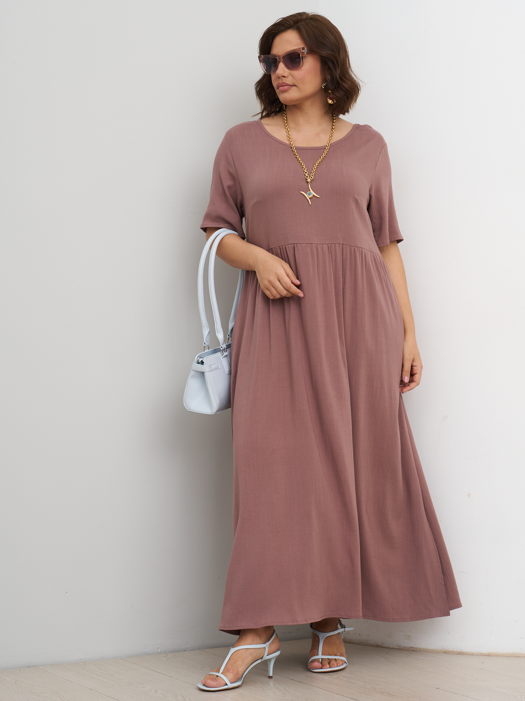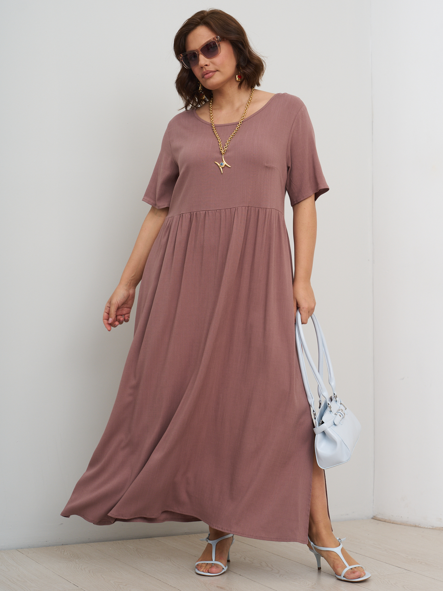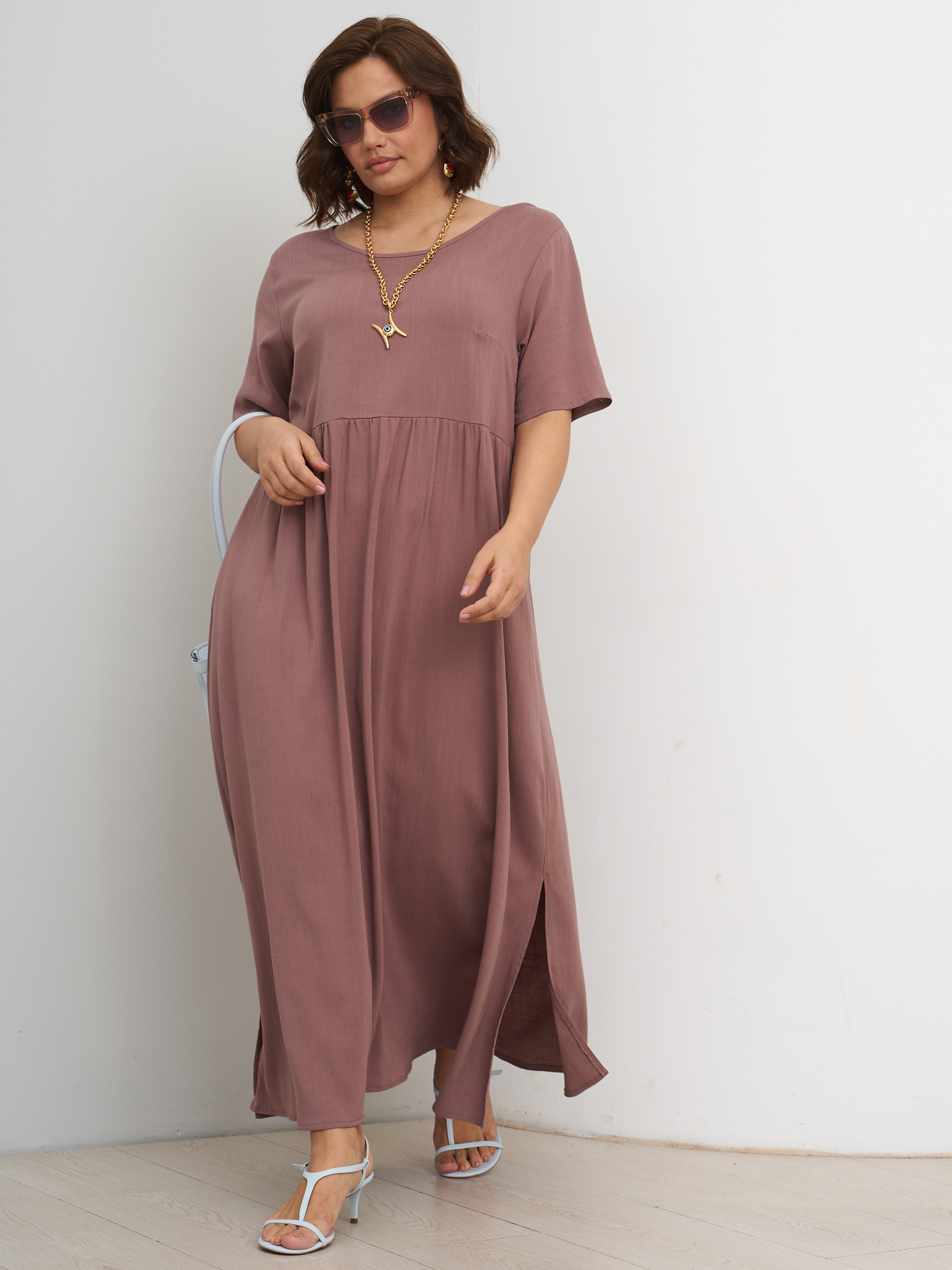 Платье летнее однотонное легкое штапельное. Отрезная полочка. Стиль бохо. На высокий рост. Разрезы по бокам. Округлый вырез горловины, свободный втачной рукав.