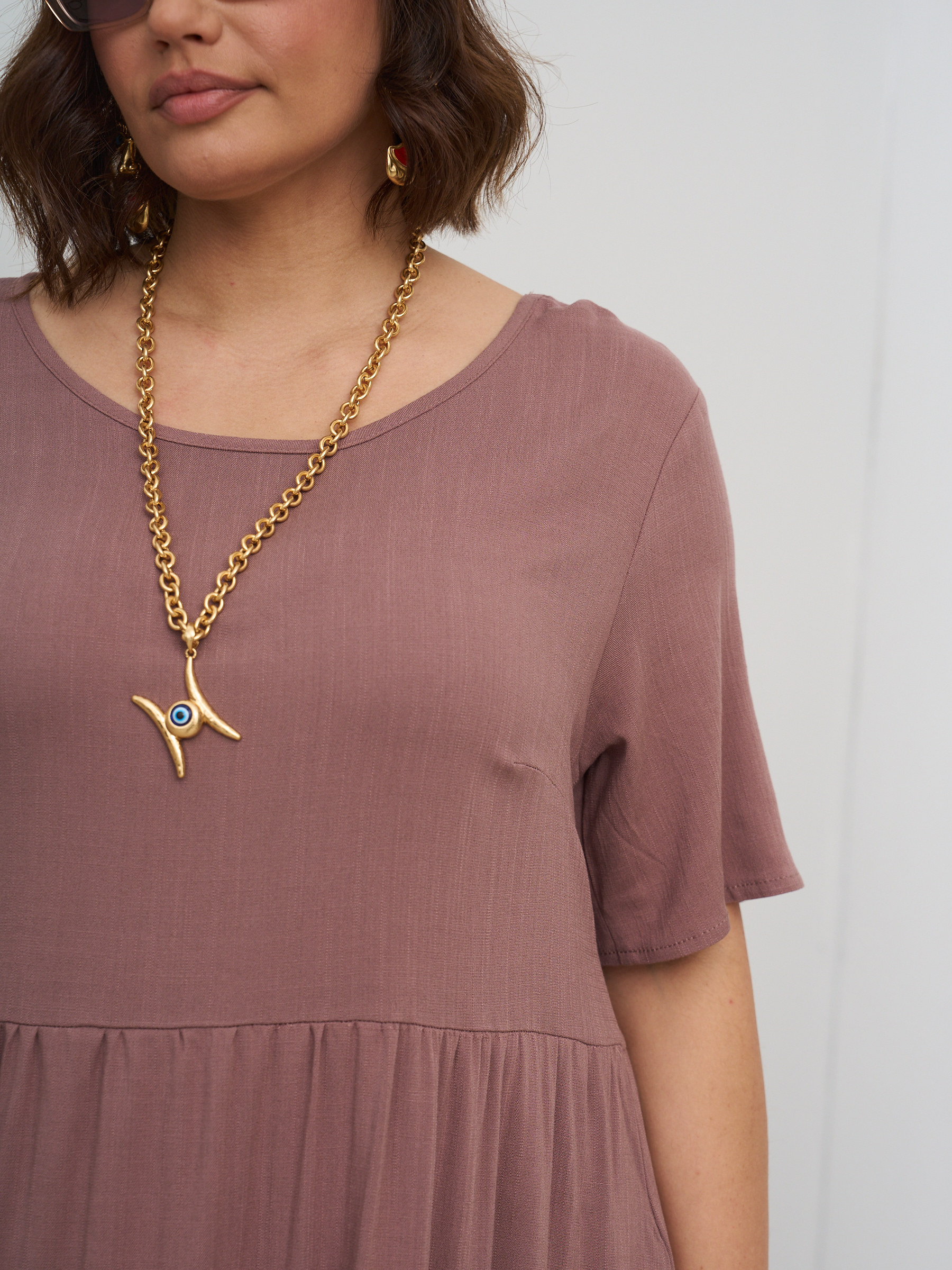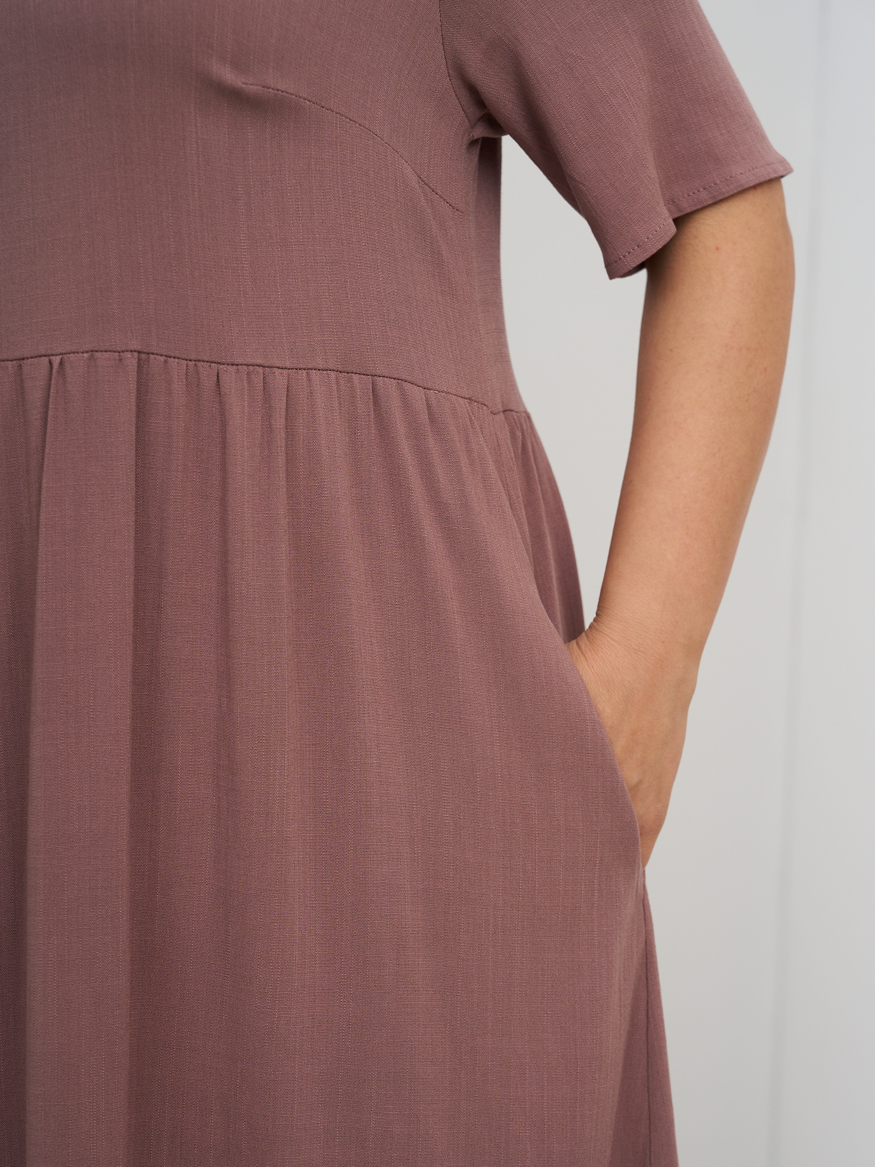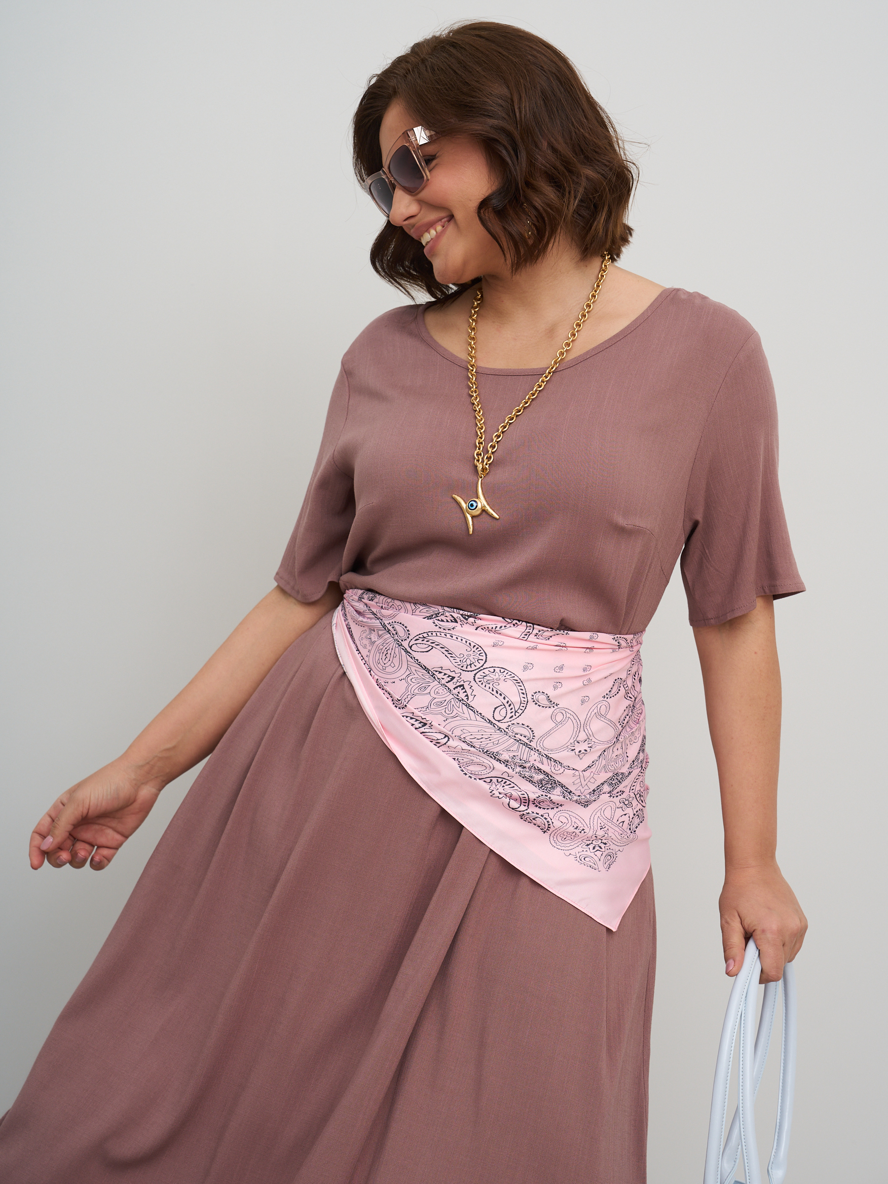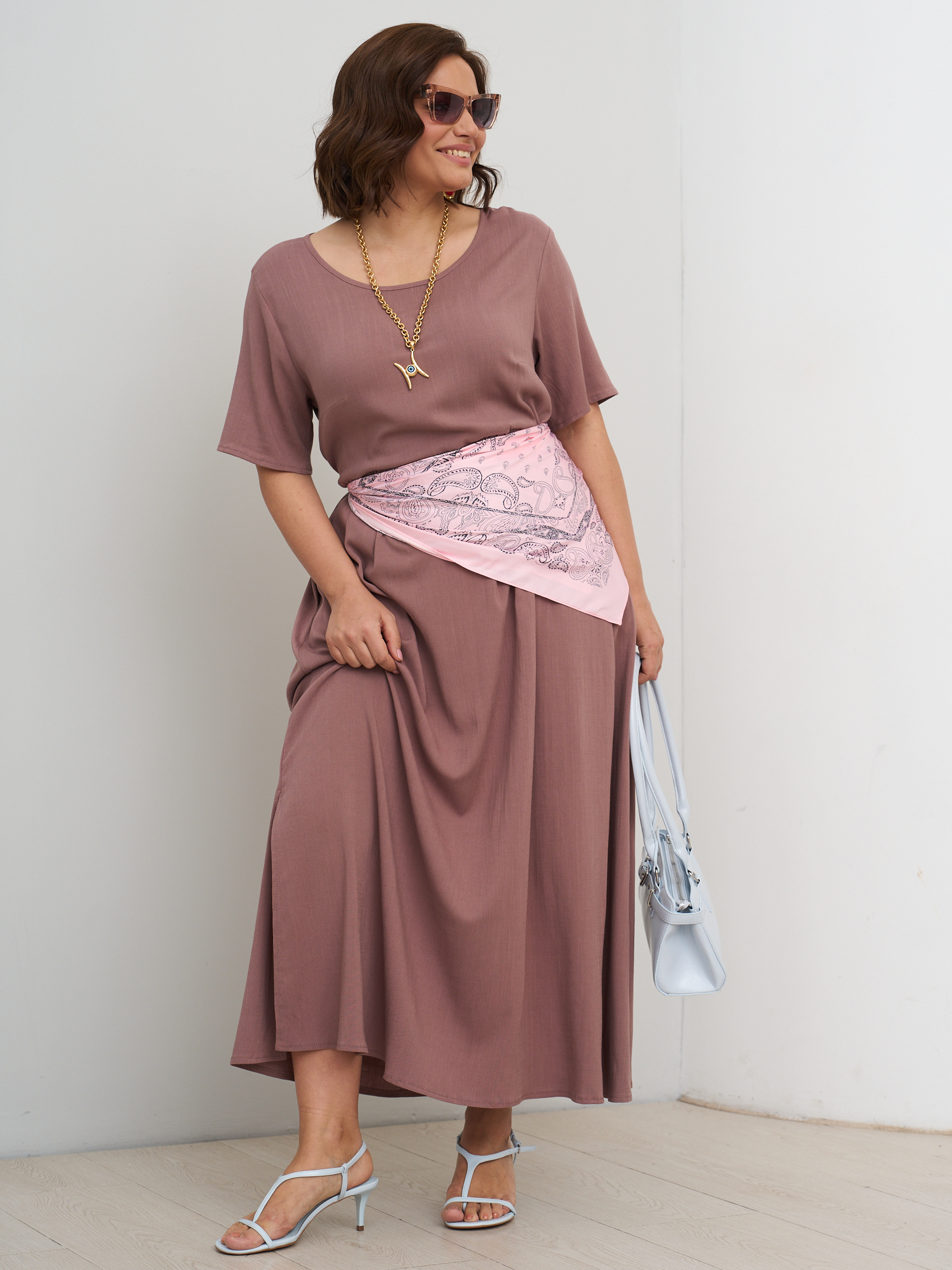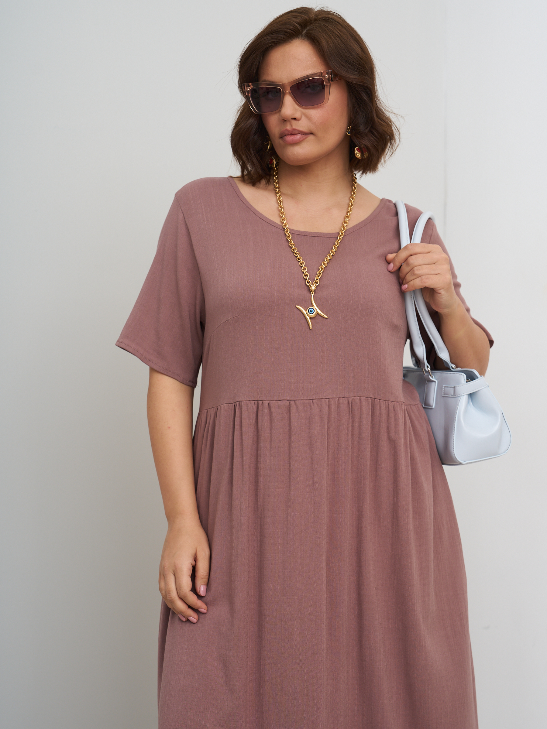 Платье летнее однотонное легкое штапельное. Отрезная полочка. Стиль бохо. На высокий рост. Разрезы по бокам. Округлый вырез горловины, свободный втачной рукав.