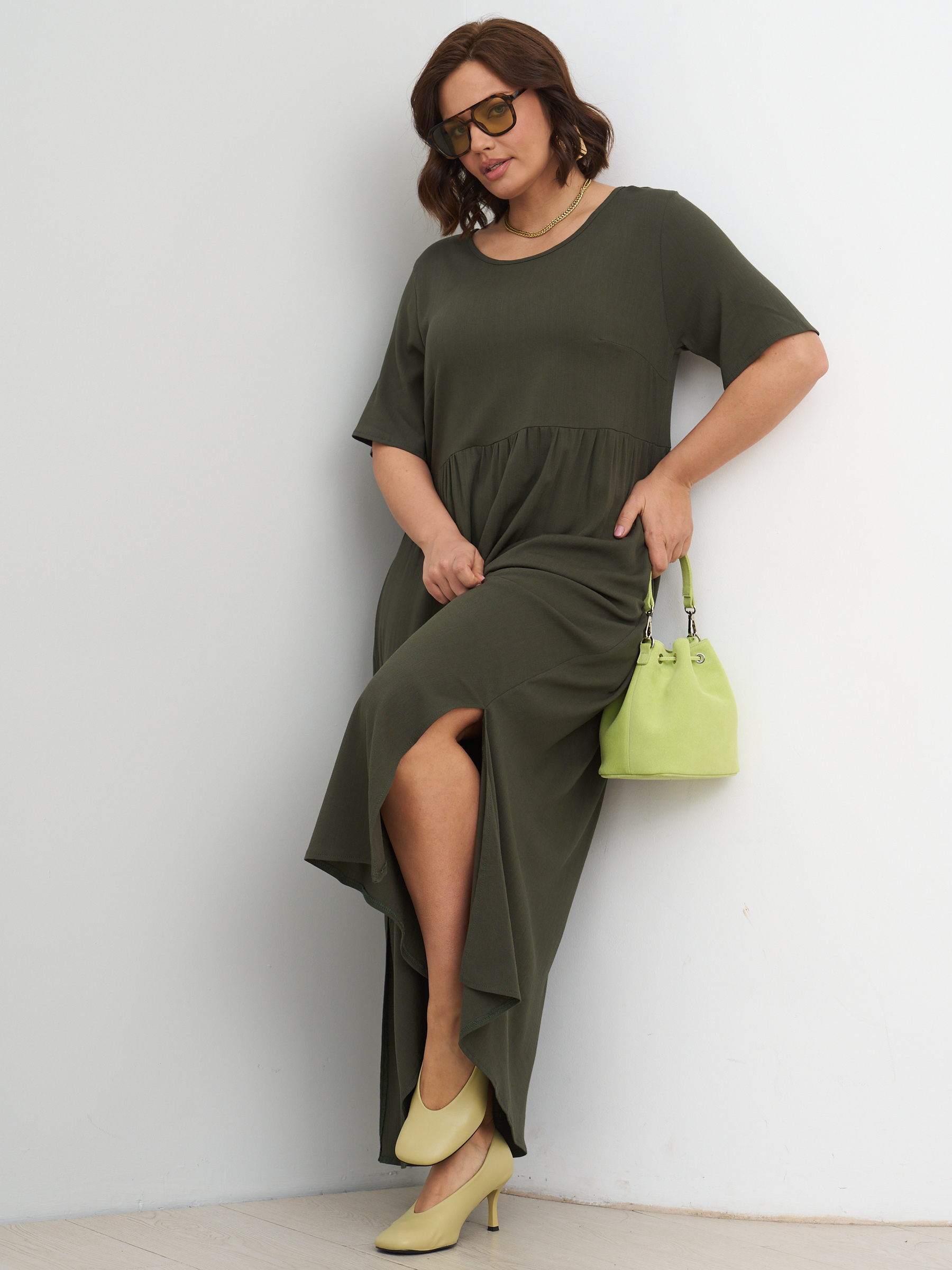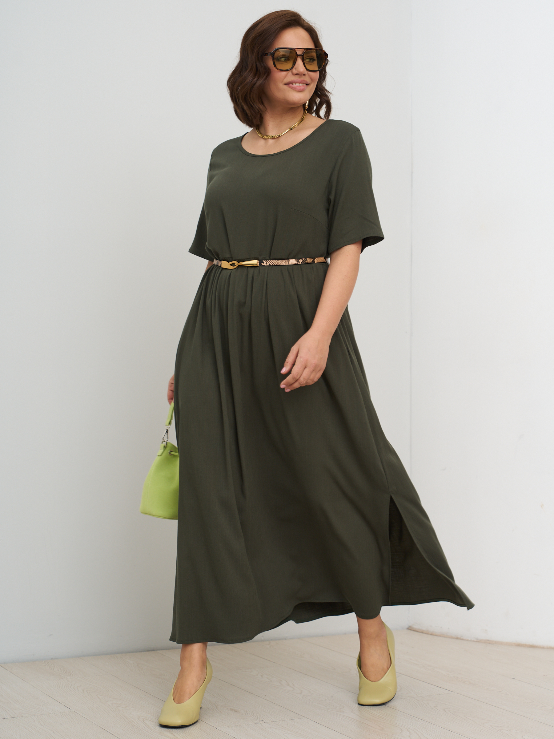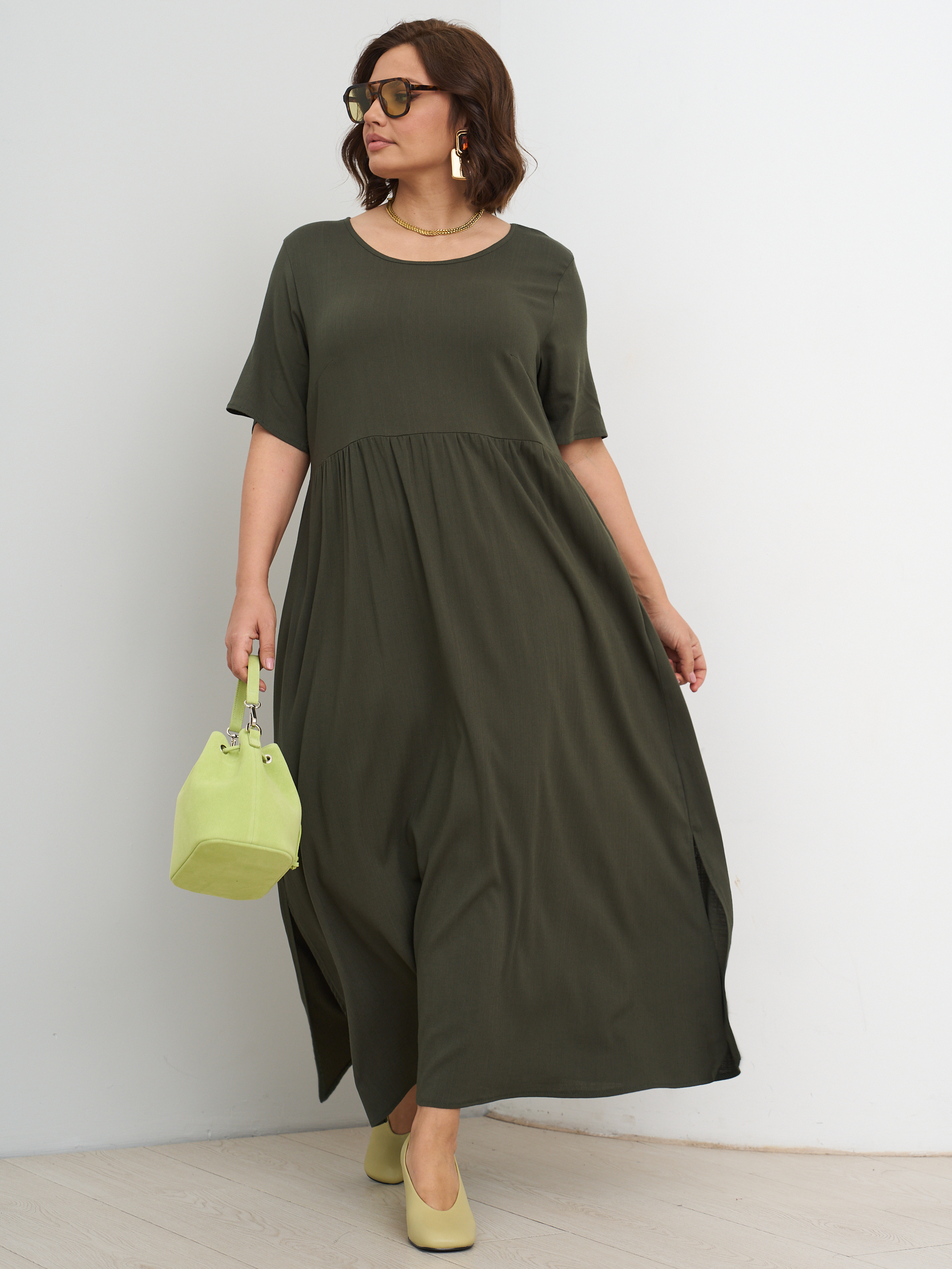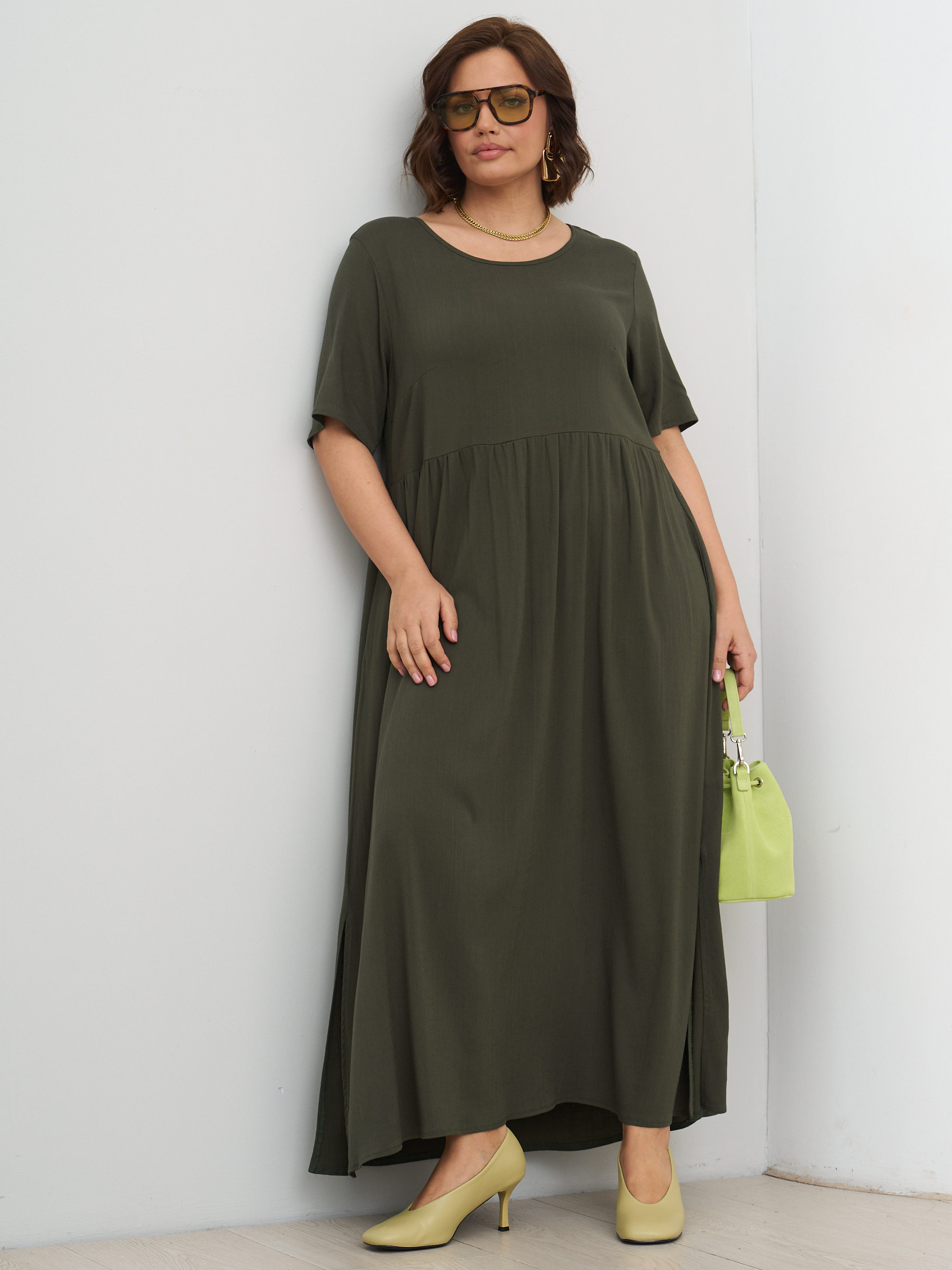 Платье летнее однотонное легкое штапельное. Отрезная полочка. Стиль бохо. На высокий рост. Разрезы по бокам. Округлый вырез горловины, свободный втачной рукав.