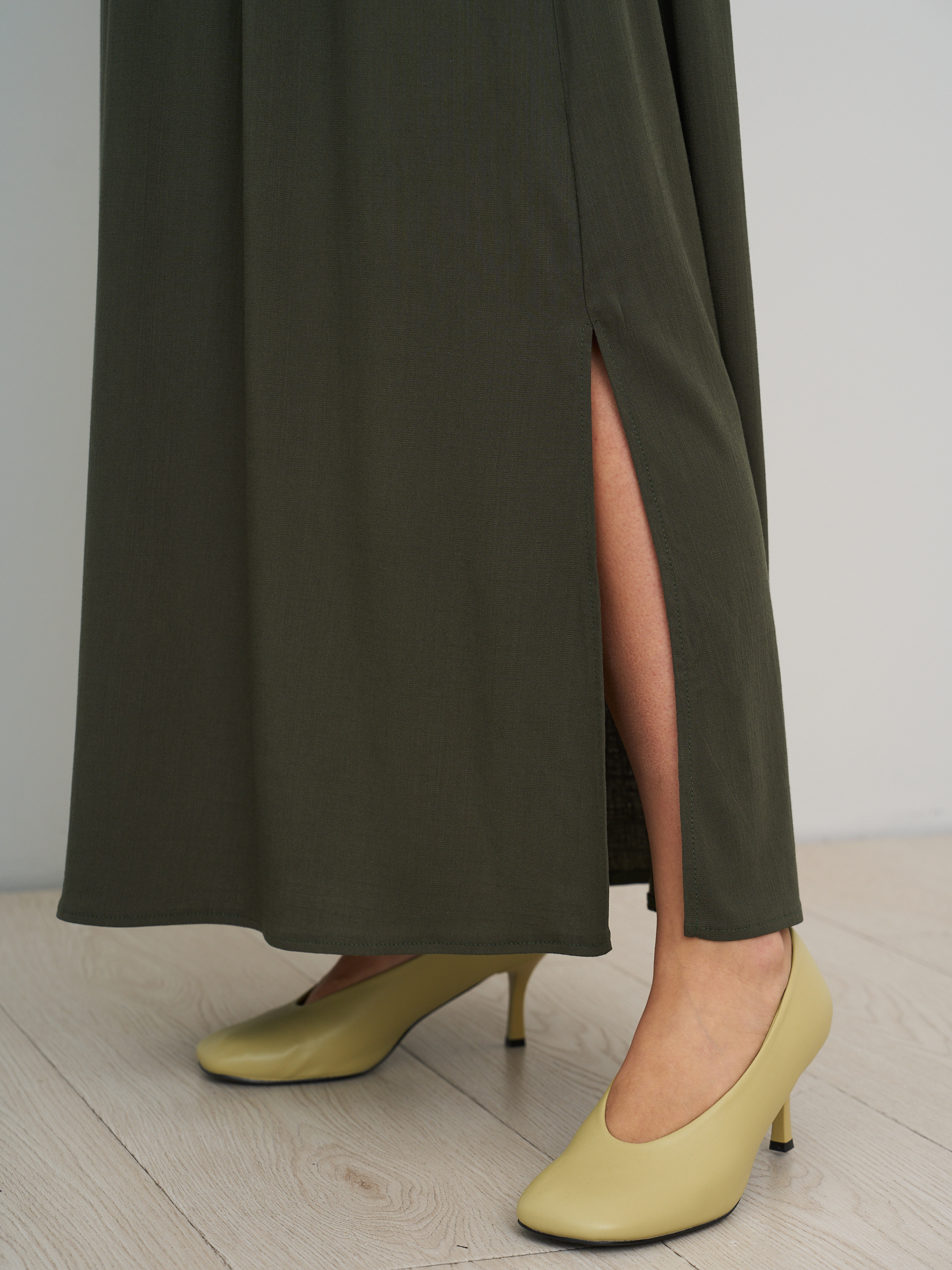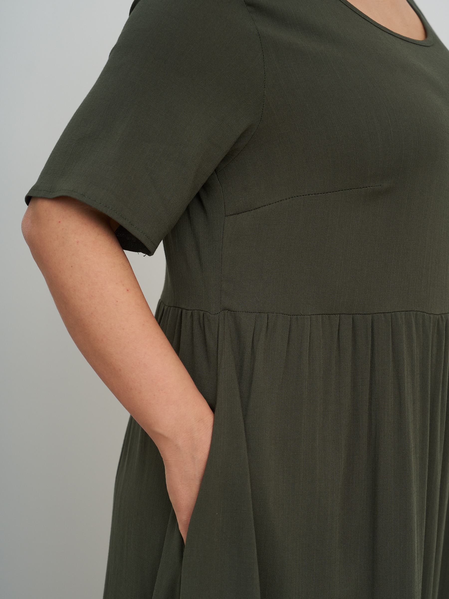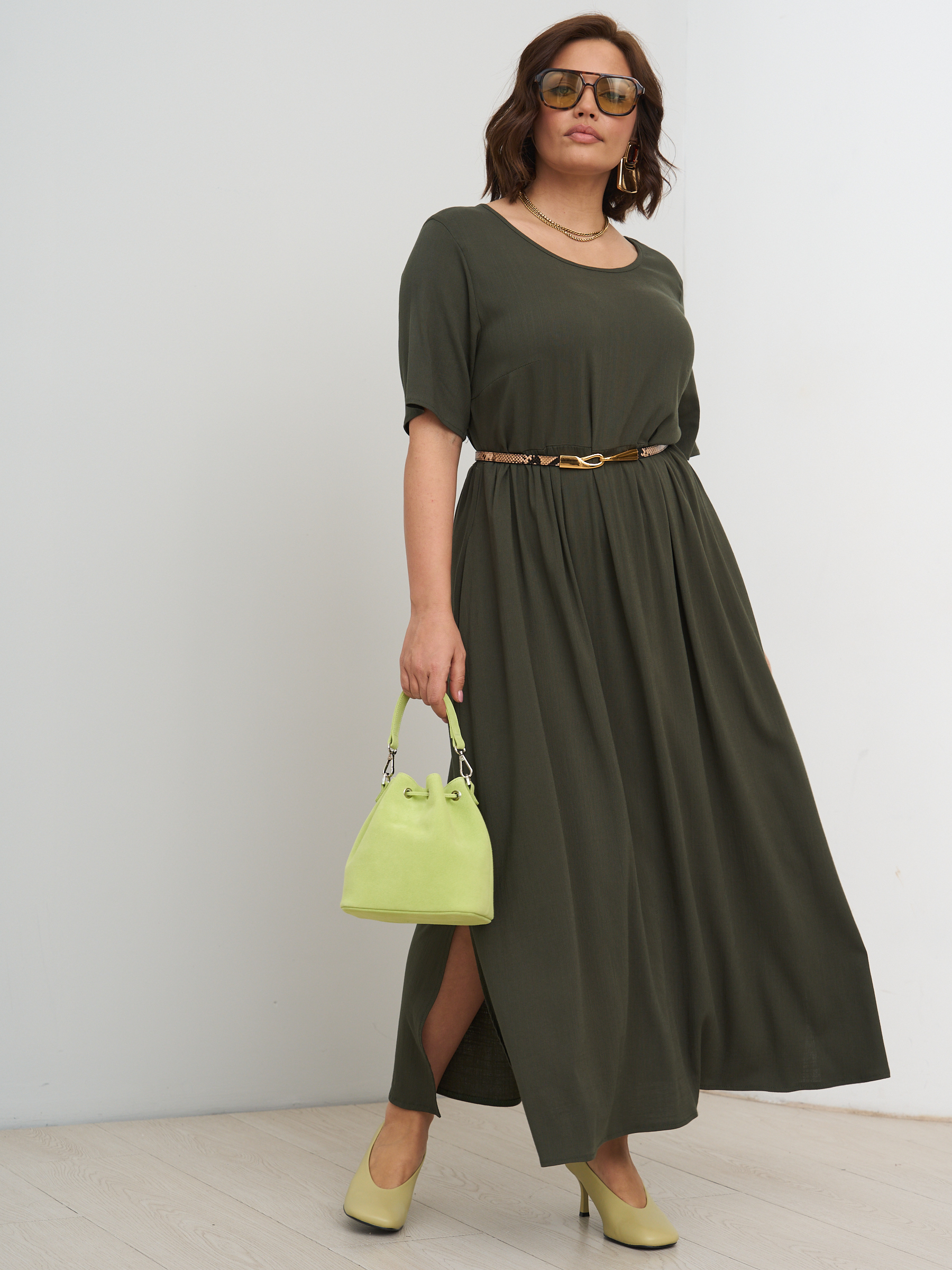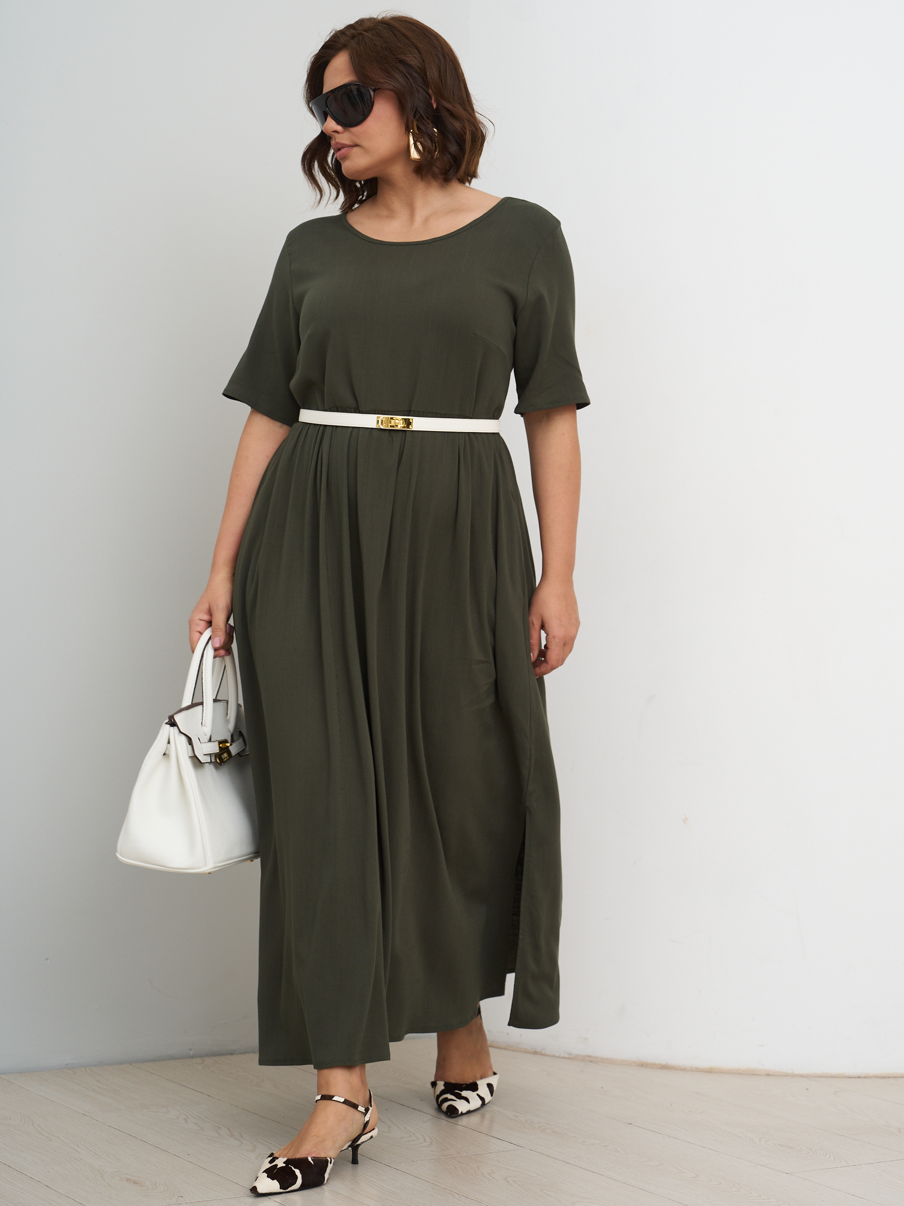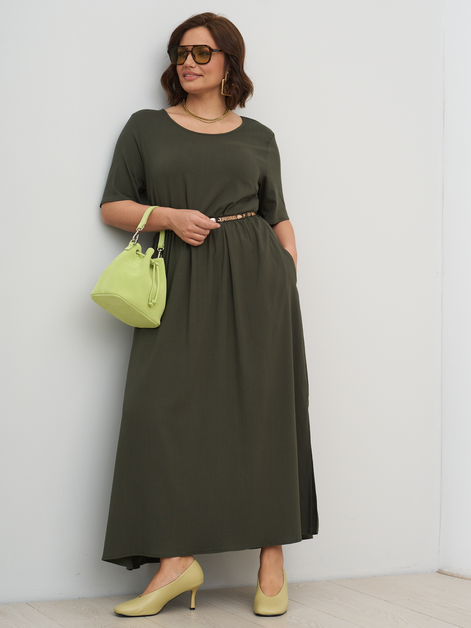 Платье летнее однотонное легкое штапельное. Отрезная полочка. Стиль бохо. На высокий рост. Разрезы по бокам. Округлый вырез горловины, свободный втачной рукав.