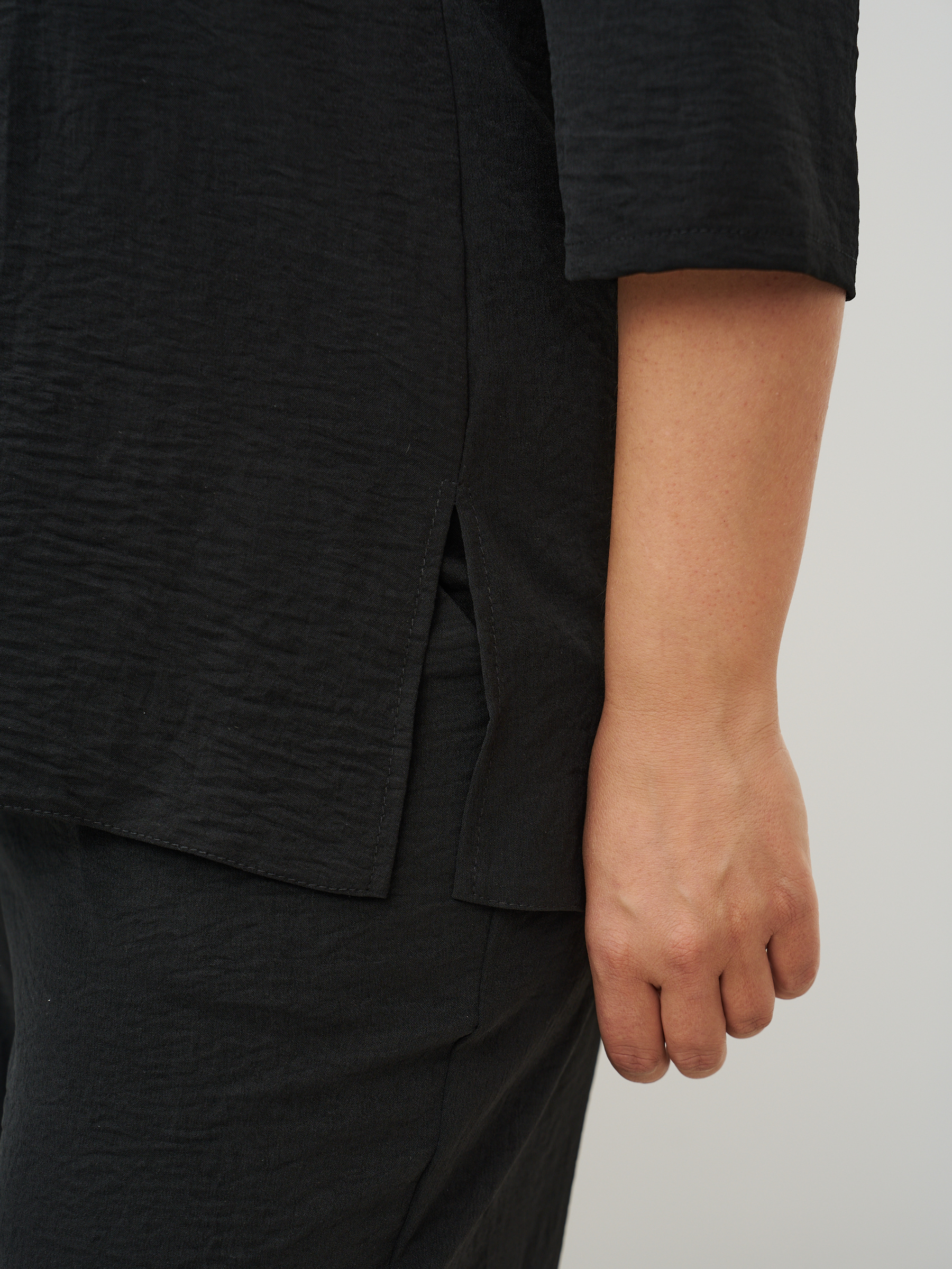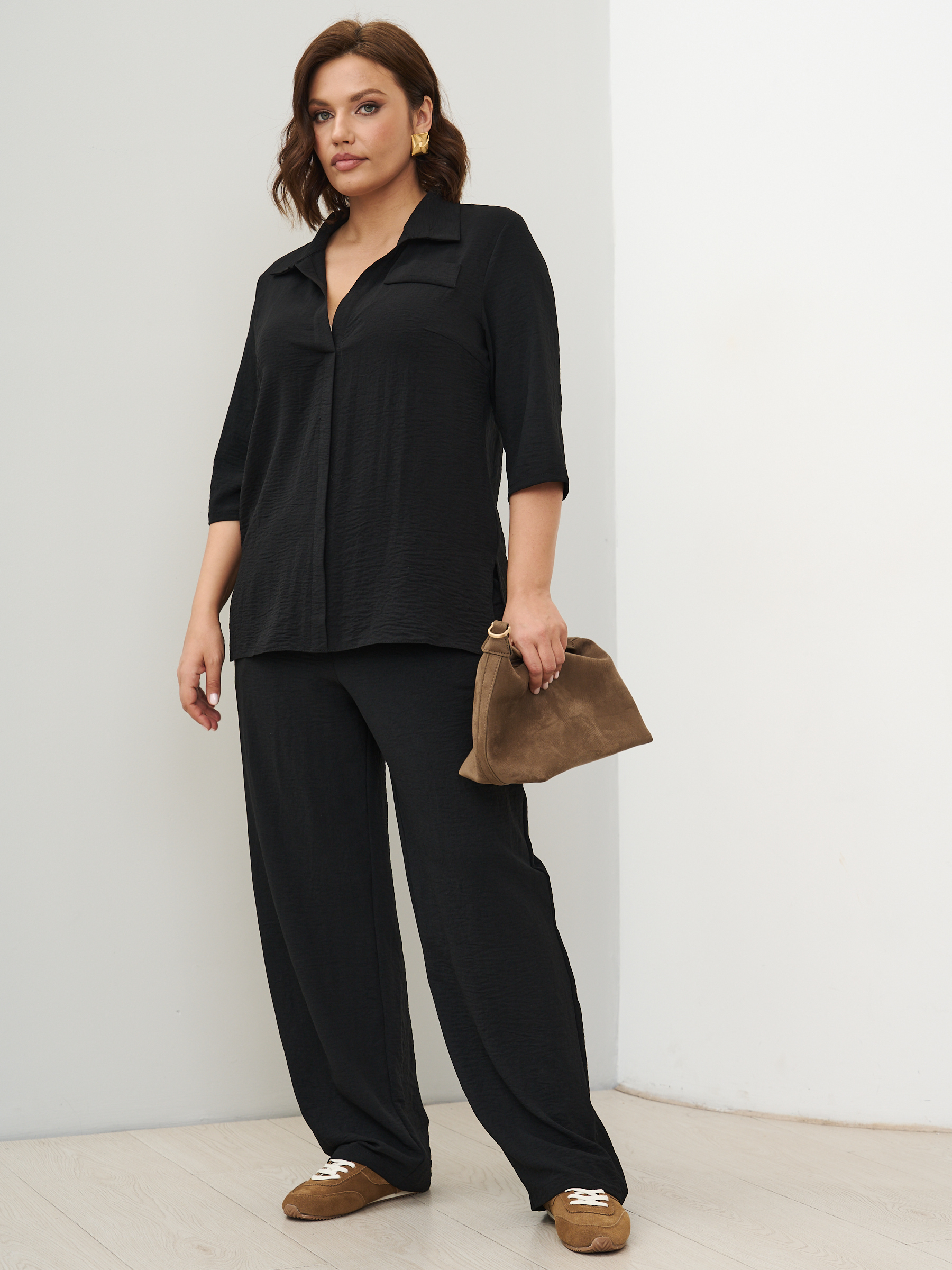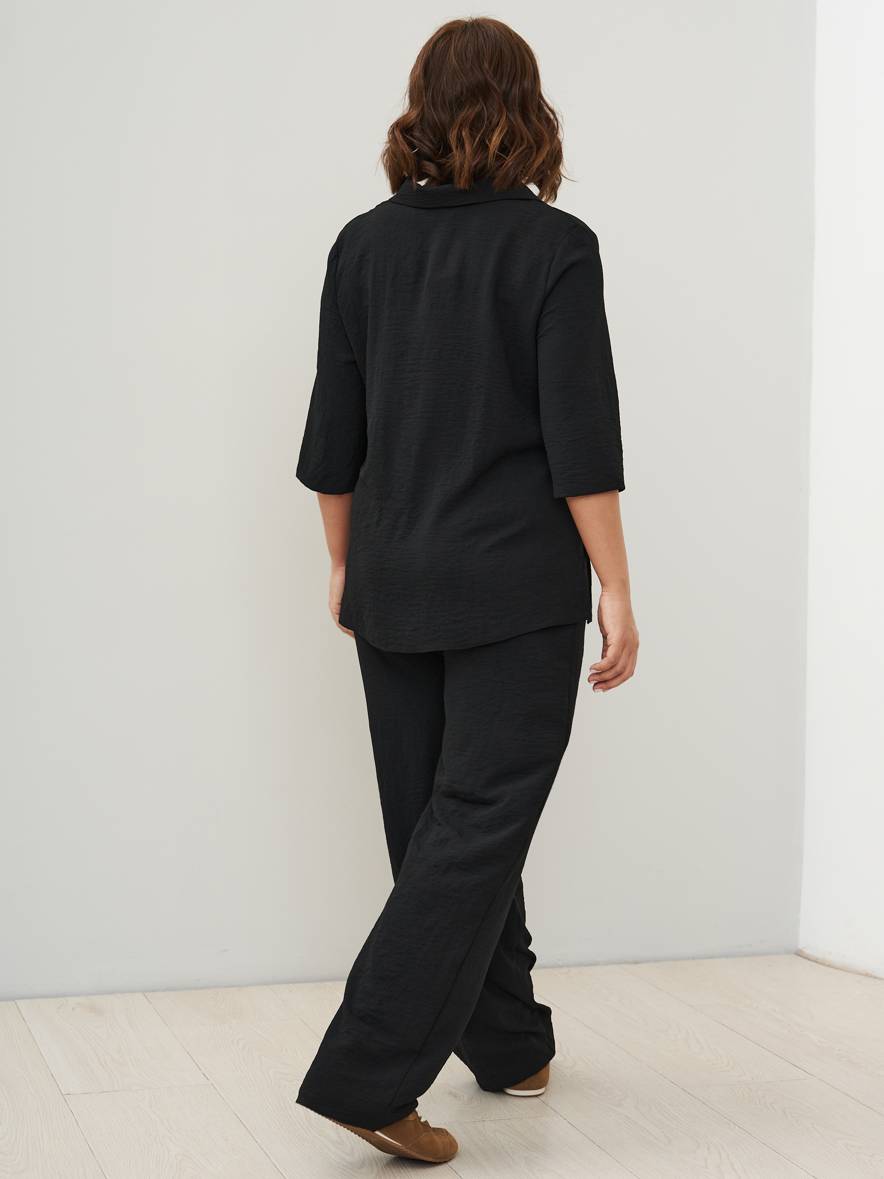 Женский костюм брючный с рубашкой летний. Прямые брюки и рубашка. Ткань - текстиль с эффектом жатки и эластичными свойствами; состав: 30% вискоза и 70% полиэстер. Брюки классические, слегка заужены к низу, карманы с отрезным бочком, пояс на широкой резинке. Рубашка с воротником стойка без застежки, без карманов. Костюм легко стирать и сушить, подходит для повседневного использования. Рекомендуется стирка в деликатном режиме. Возможна небольшая усадка ткани, постирайте перед тем, как регулировать длину брюк. Произведено в России с высоким качеством и вниманием к деталям. Летний костюм из текстиля станет идеальным выбором для тех, кто ценит комфорт и стиль.