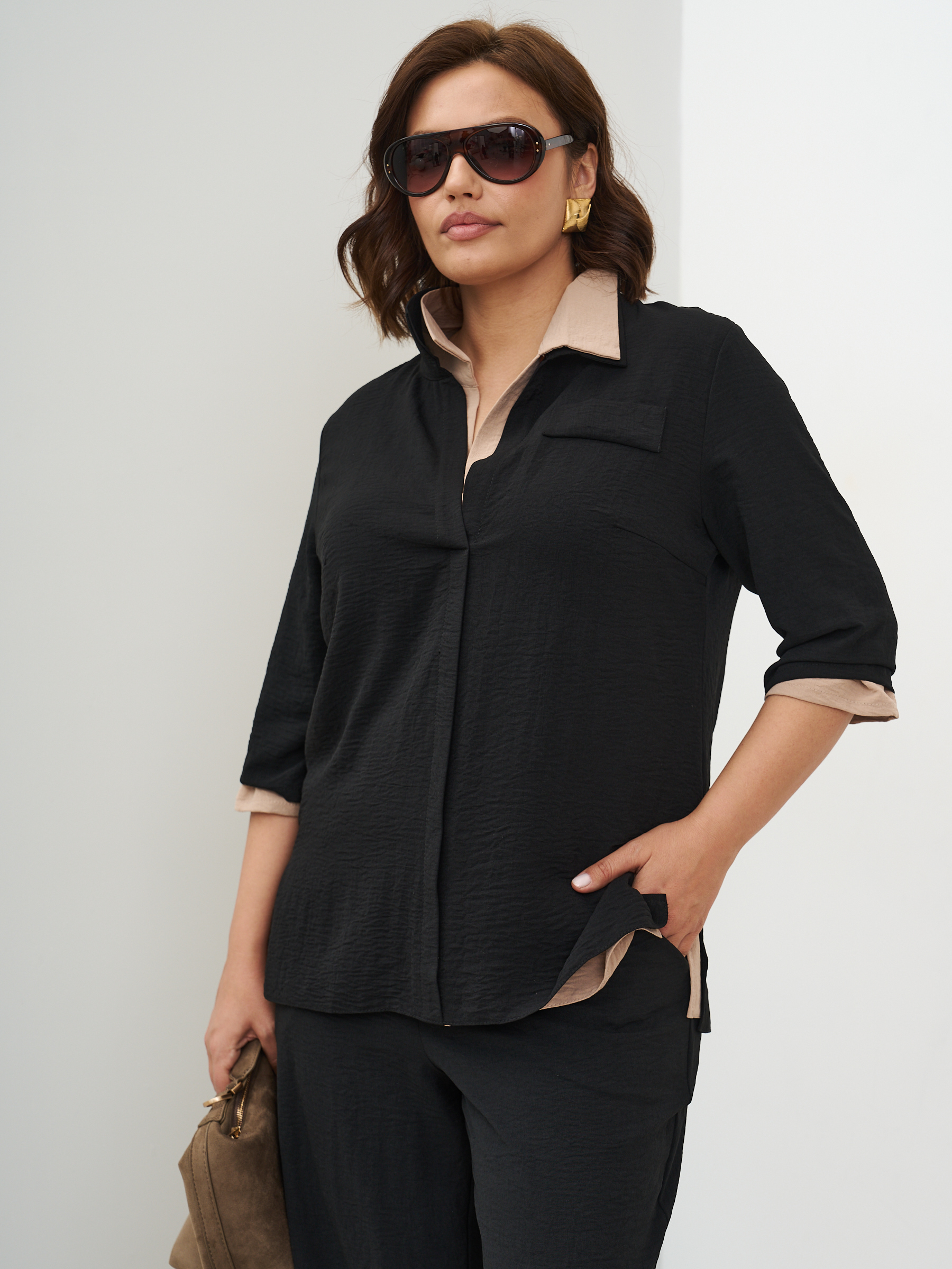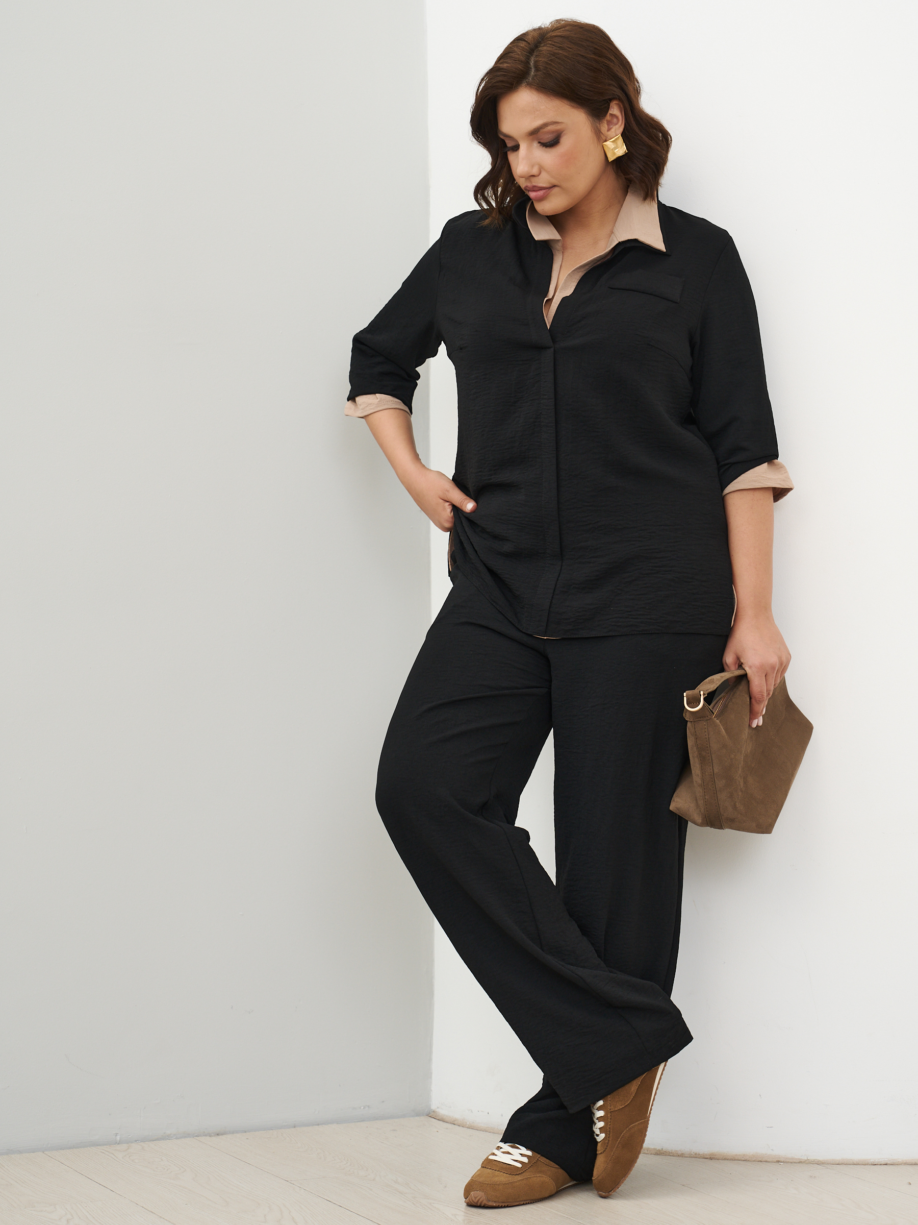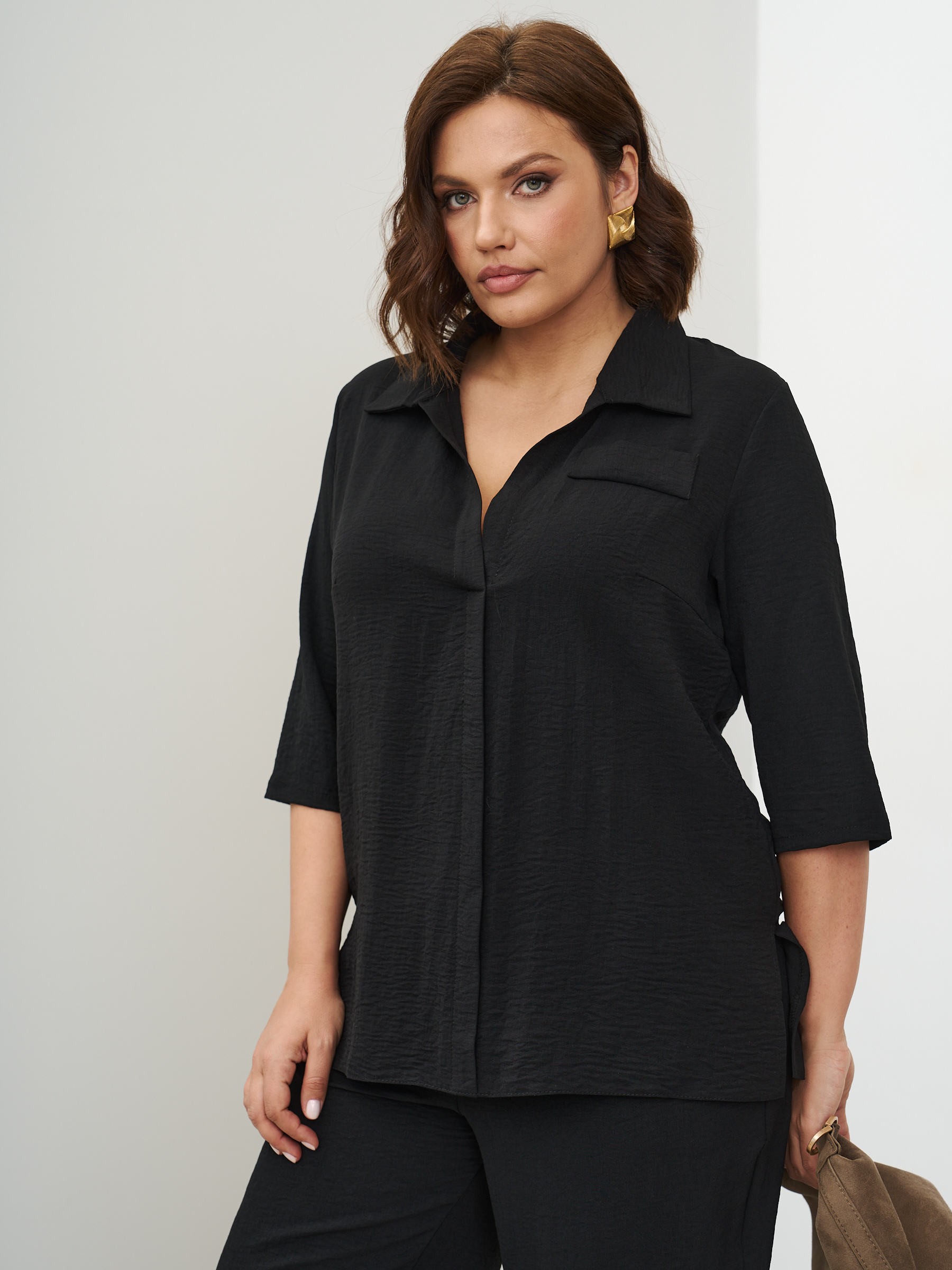 Женский костюм брючный с рубашкой летний. Прямые брюки и рубашка. Ткань - текстиль с эффектом жатки и эластичными свойствами; состав: 30% вискоза и 70% полиэстер. Брюки классические, слегка заужены к низу, карманы с отрезным бочком, пояс на широкой резинке. Рубашка с воротником стойка без застежки, без карманов. Костюм легко стирать и сушить, подходит для повседневного использования. Рекомендуется стирка в деликатном режиме. Возможна небольшая усадка ткани, постирайте перед тем, как регулировать длину брюк. Произведено в России с высоким качеством и вниманием к деталям. Летний костюм из текстиля станет идеальным выбором для тех, кто ценит комфорт и стиль.